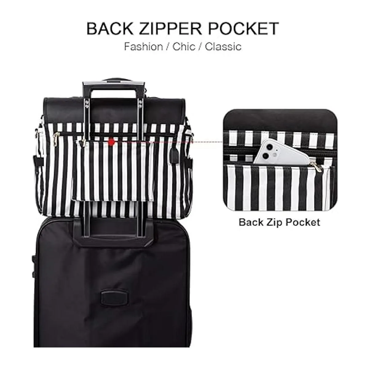 Diseño profesional: un puerto de carga USB es fácil de cargar tu teléfono cuando estás en movimiento; 2 bolsillos laterales elásticos para botellas de agua para guardar tus bebidas y paraguas; 3 trabillas para bolígrafos para un fácil descubrimiento y acceso rápido a tus bolígrafos; la correa de equipaje en la parte posterior ayuda a liberar tu mano y disfrutar de tu viaje.