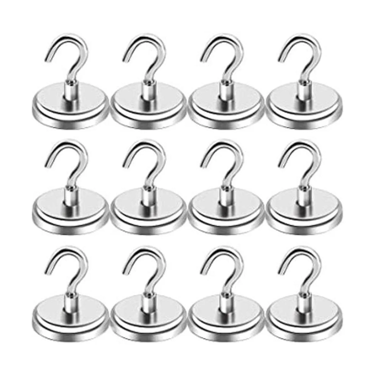 LOVIMAG Ganchos magnéticos resistentes de 100 libras, ganchos magnéticos de neodimio fuertes para el hogar, la cocina, el lugar de trabajo, la oficina, etc. Soporta hasta 100 libras, paquete de 12
