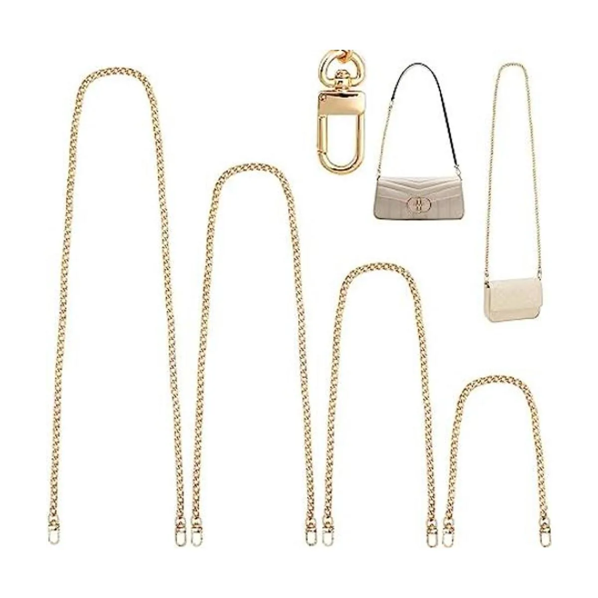 LOVLLE Paquete de 4 correas de cadena doradas para monedero, cadenas planas de hierro con hebillas de metal para repuesto de hombro, bolso cruzado 15.7 pulgadas, 23.6 pulgadas, 35.4 pulgadas, 47.2 pulgadas