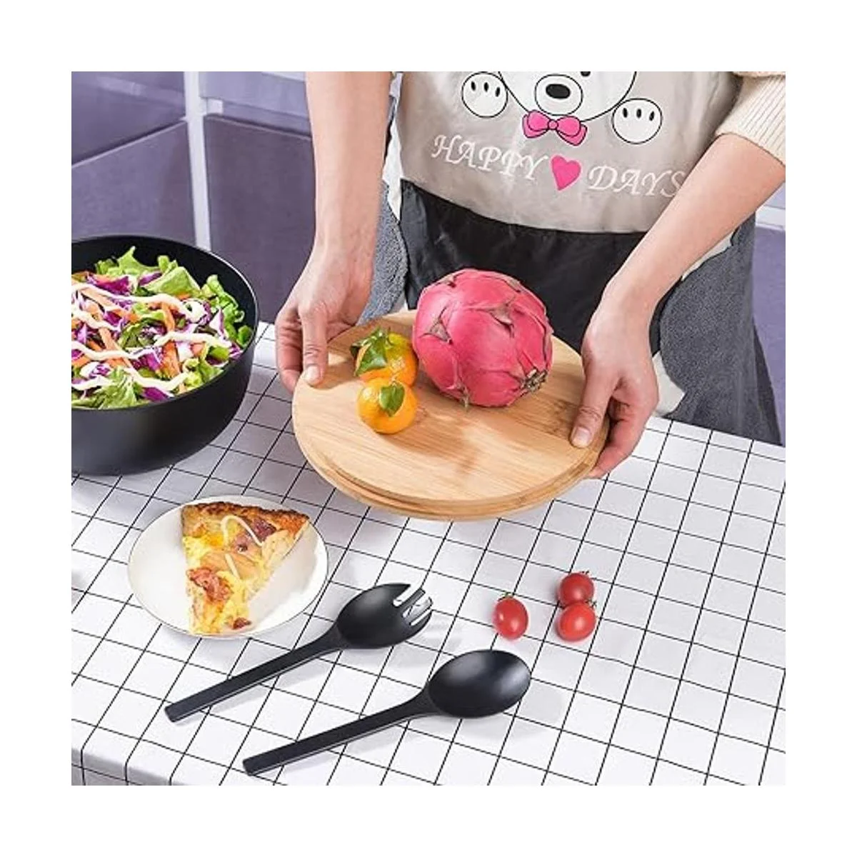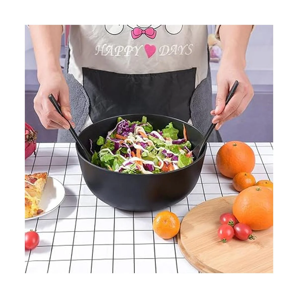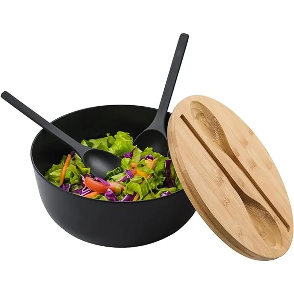 LOVYANXUE Tazón de ensalada de fibra de bambú con servidores, grande de 9.8 pulgadas de bambú natural con servidores con tapa, cuchara y tenedor para frutas, ensaladas y verduras negro, 10 pulgadas