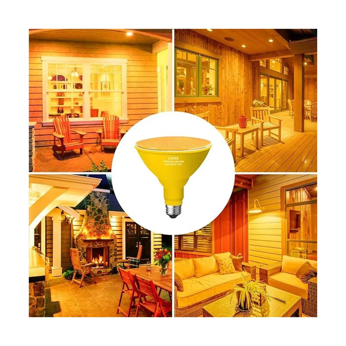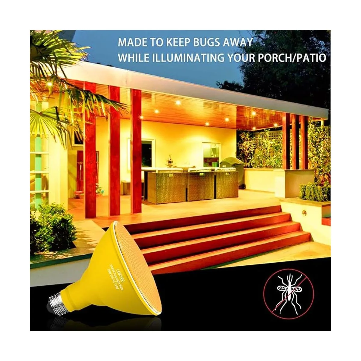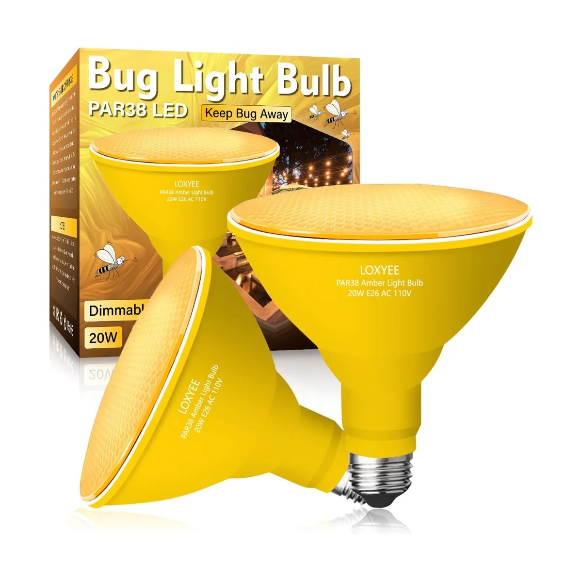 LOXYEE Par38 Bombillas LED color amarillo ámbar para insectos, 20 W equivalente a 200 W, luz ámbar para insectos, base E26, luz de inundación al aire libre para luces de porche, iluminación de pasillo, lámparas decorativas, no regulables paquete de 2