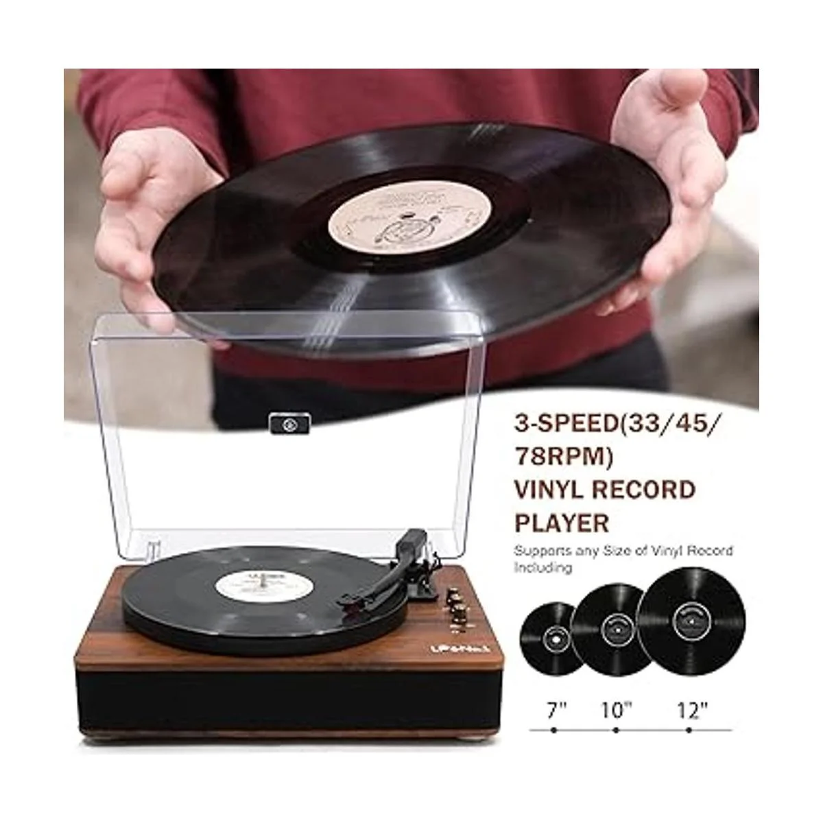 LPNO.1 Tocadiscos Bluetooth con altavoces integrados y reproductor de discos de fonógrafo vintage de 3 velocidades para entretenimiento y decoración del hogar