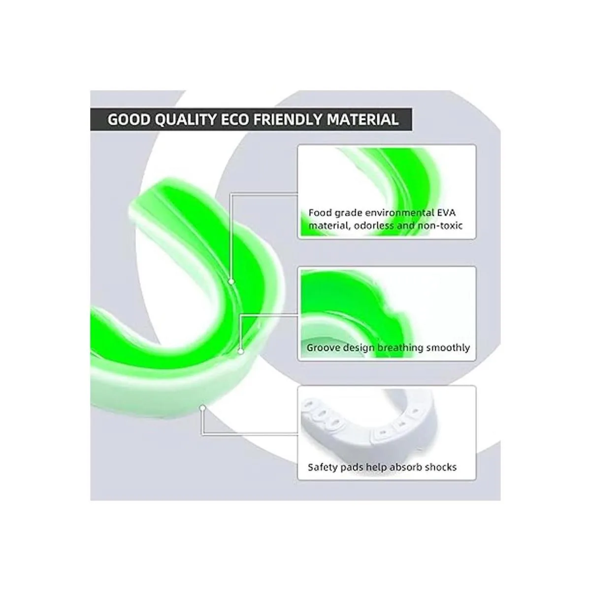 Material seguro y respetuoso con el medio ambiente: la capa interior del protector bucal para niños y adolescentes está hecha de material EVA suave y respetuoso con el medio ambiente, que es inodoro y no tóxico, fácil de usar, y tiene buenas propiedades a prueba de golpes y amortiguación. Recomendamos cambiarlo cada 3 meses y desinfectarlo antes y después de su uso.
