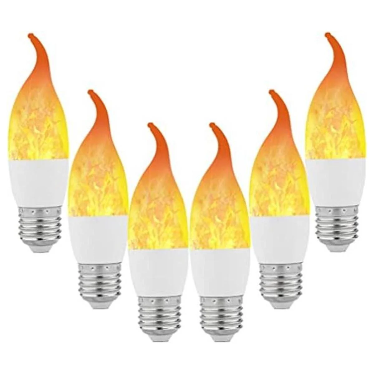 Lpraer Paquete de 6 bombillas LED E26 con efecto de llama, 3 modos parpadeantes con punta de llama, bombillas de candelabro blancas cálidas para Pascua, Halloween