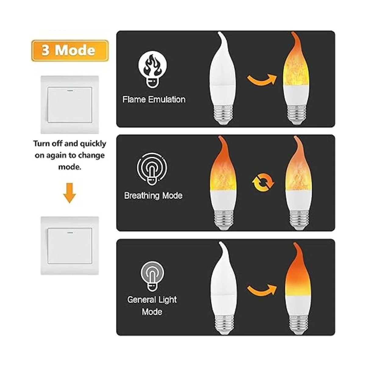 Diseño de 3 modos: modo de emulación de llama, modo de respiración y modo de luz general. Cuando enciendas/apagas las bombillas de llama, estos 3 hermosos modos se cambiarán alrededor uno por uno. Utiliza diferentes modos para diferentes cularlocaciones para crear la atmósfera que desees.