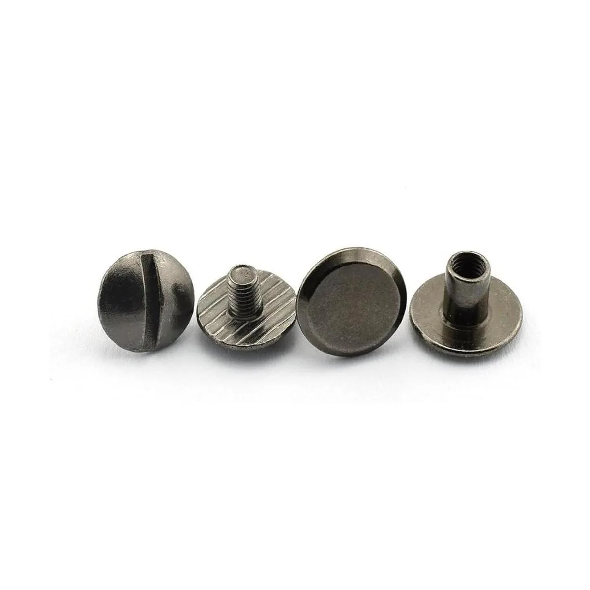 LQ Industrial 30 juegos de tornillos Chicago M4 x 0.236 in, cabeza redonda ranurada, tornillos de encuadernación de acero al carbono, remaches, encuadernación de libros, perno de montaje de manualidades de cuero, 14 pulgadas, negro