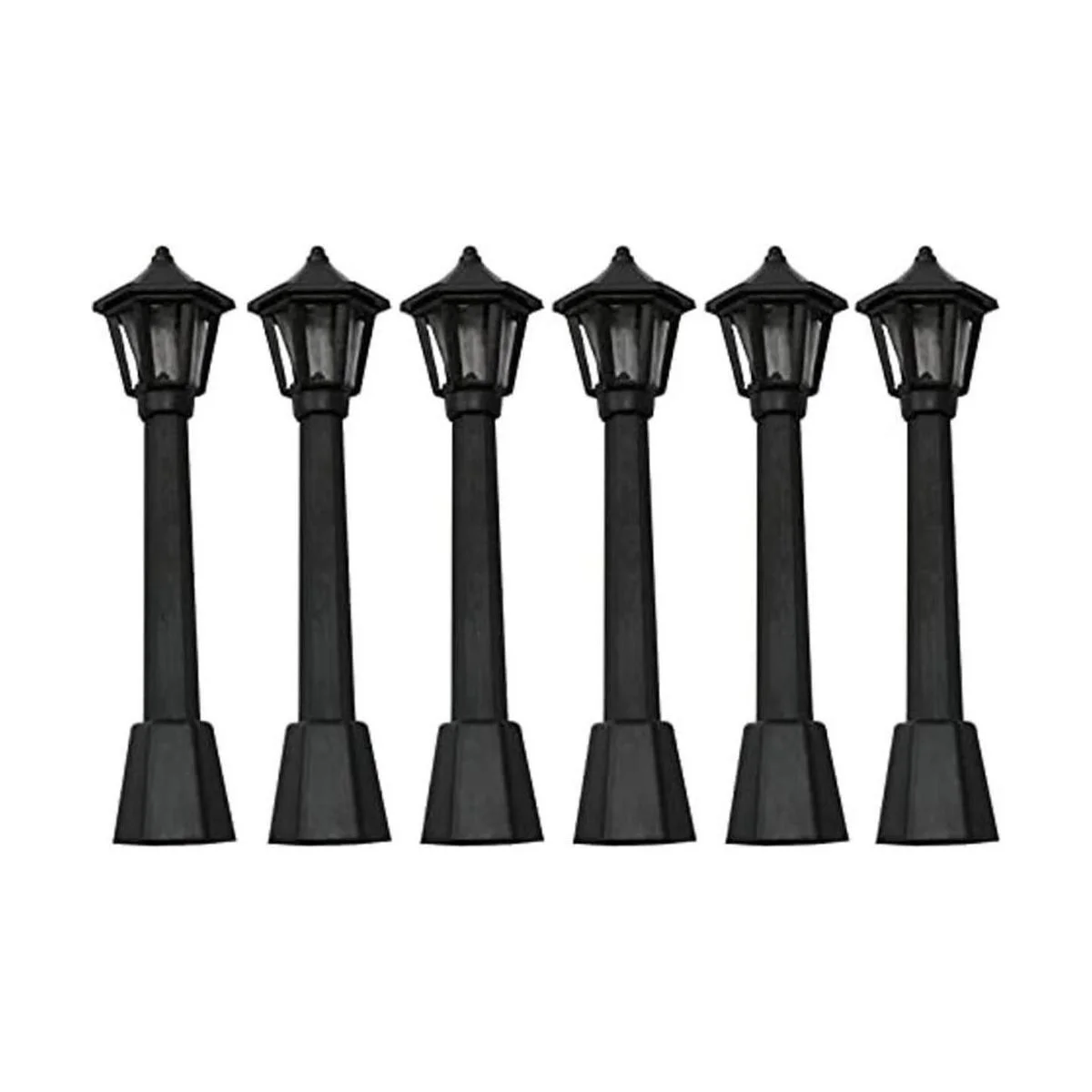 LQ Industrial Mini Lamppost 6 piezas miniatura tren tren lámpara poste luces de calle modelo para casa de muñecas micro paisaje hadas jardín