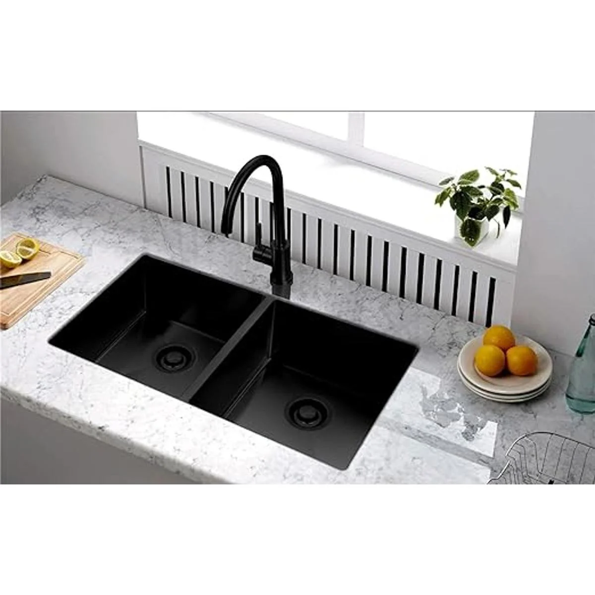 La brida y el tapón del fregadero de basura negro se coordinan con fregaderos compuestos y fregaderos de acero inoxidable.