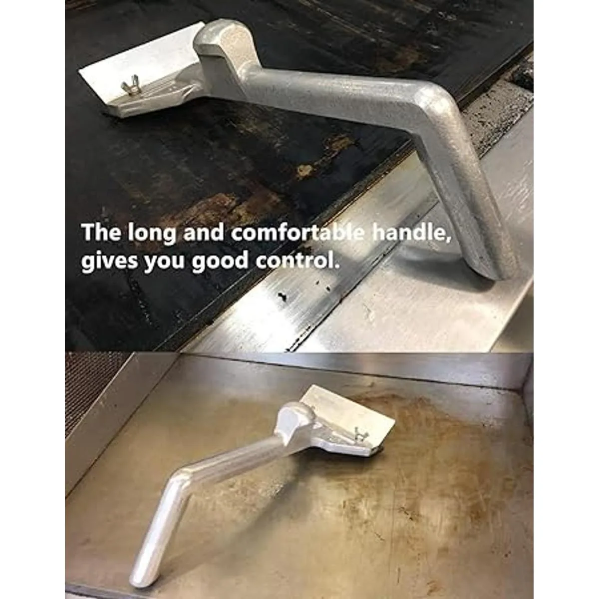 Elimina fácilmente los residuos quemados y pasteles: la hoja ancha de acero inoxidable elimina los alimentos quemados con menos trazos, eliminando incluso los más duros atascados en alimentos o suciedad. La herramienta de limpieza comercial de raspadores es perfecta para parrillas, parrillas planas, parrillas teppanyaki e hibachi, también se puede utilizar para limpiar la bandeja de la parrilla.