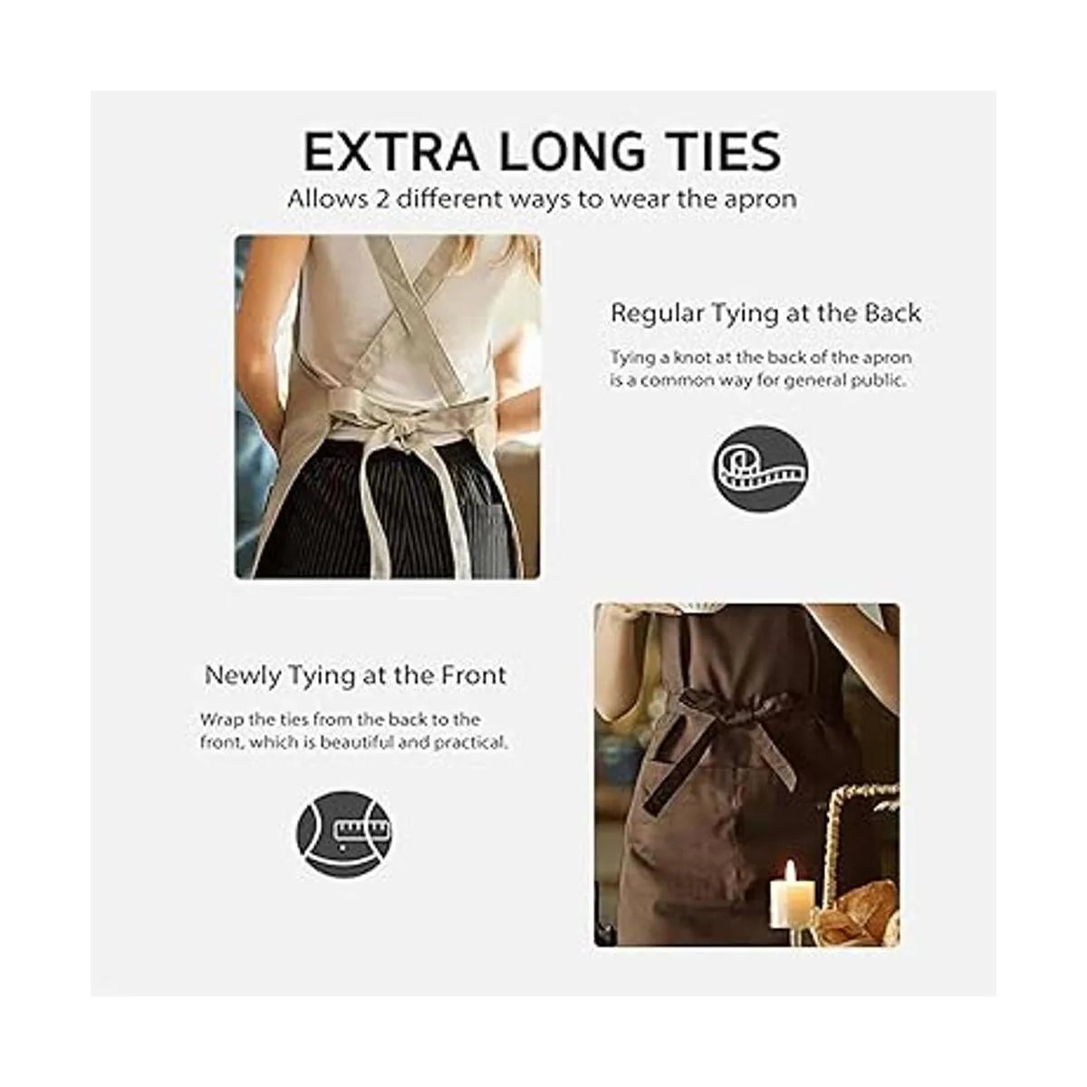 1. Nuestro delantal tiene dos correas ajustables para el cuello para un ajuste cómodo y seguro que no se interpondrá en tu camino. Mantén tu ropa limpia de derrames de cocina.