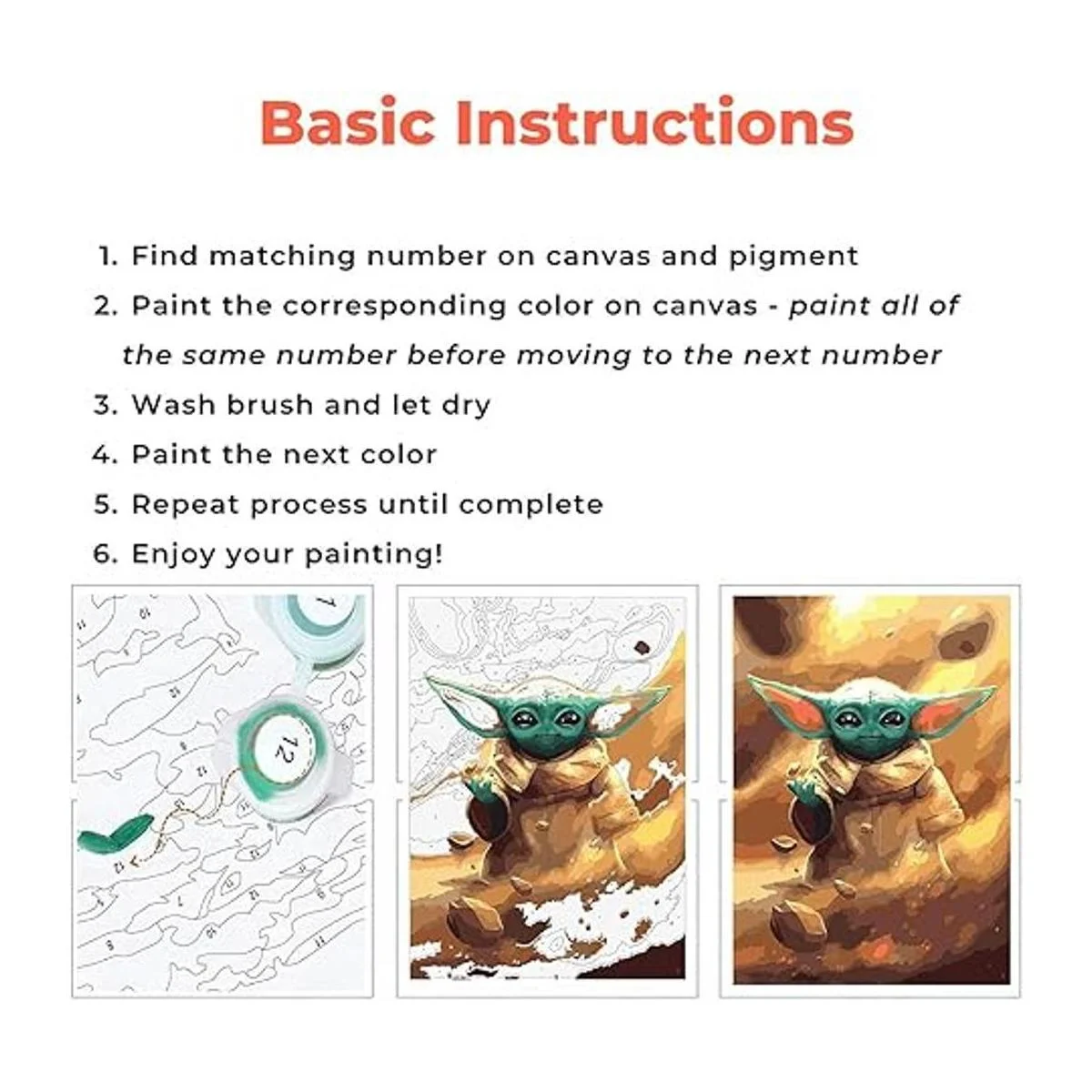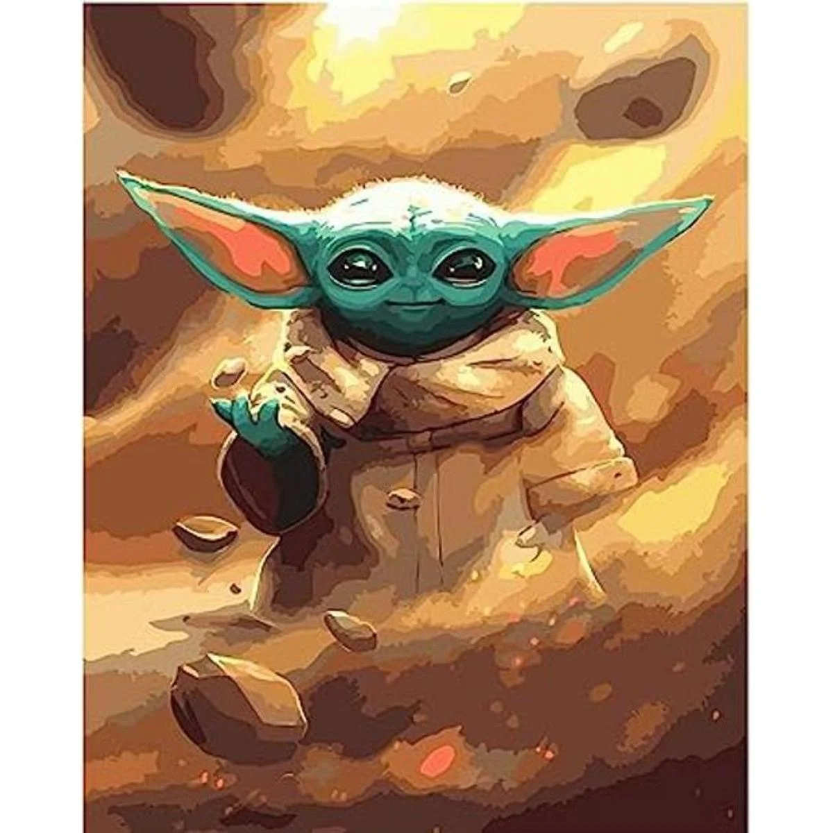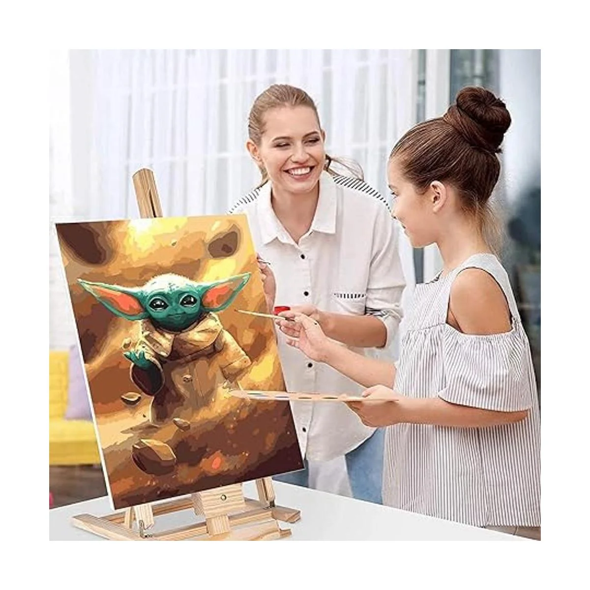 LSPBN Pintura por números para adultos, principiantes, niños, bebés, Yoda Star Wars, kit de pintura para adultos por números en lienzo sin enmarcar, pintura acrílica con 3 pinceles, fácil manualidades, pasatiempos para mujeres, kit de pintura al óleo