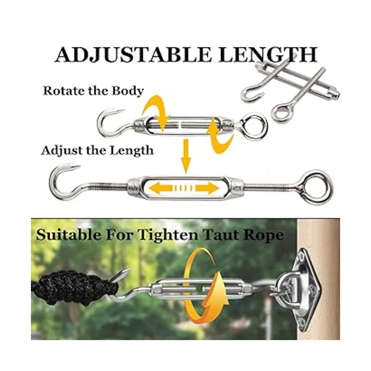 Lsqurel Gancho de tensores de acero inoxidable 304, kit de barandilla de cable de tensión de cuerda de alambre resistente para instalación de tienda de campaña de sombra solar M410 unidades