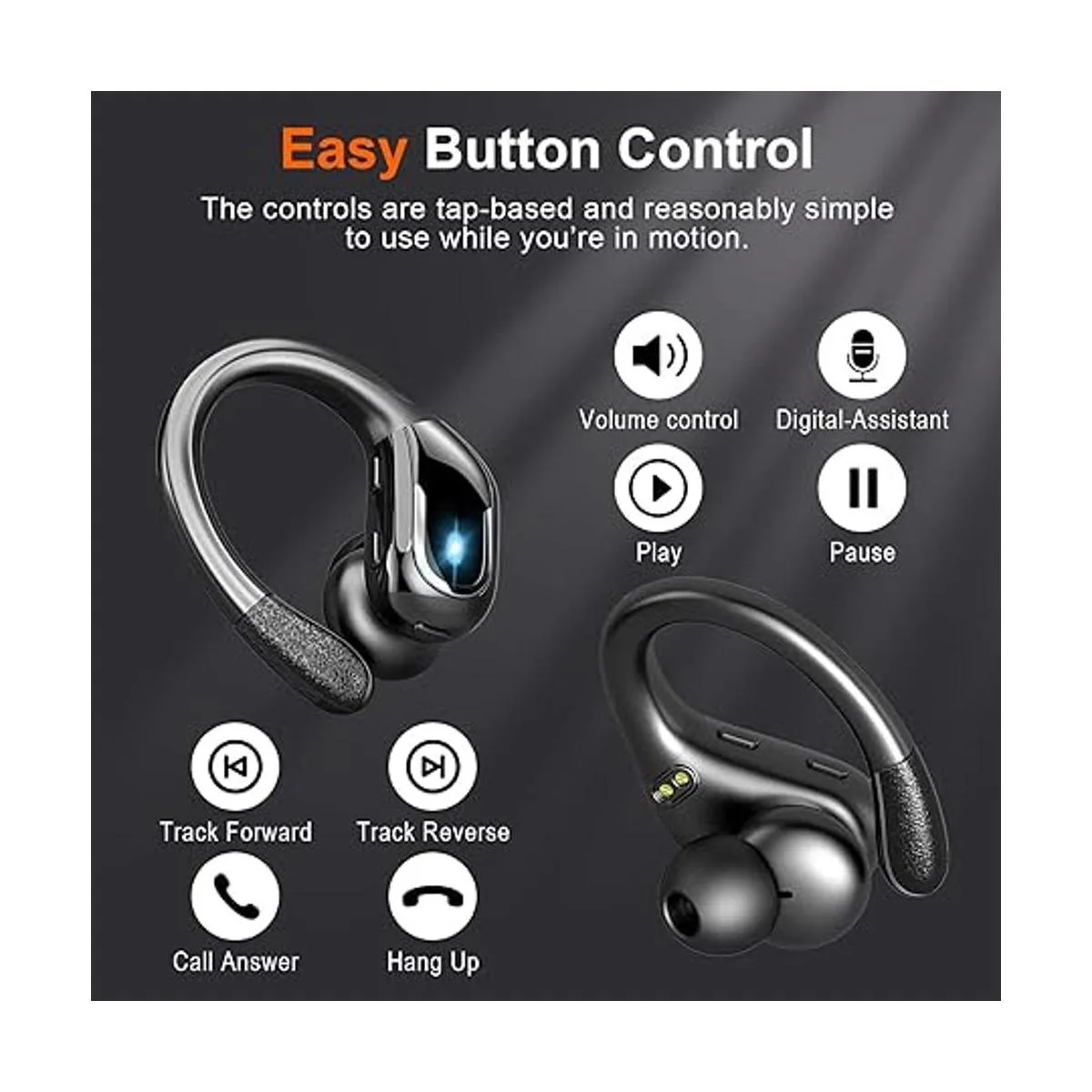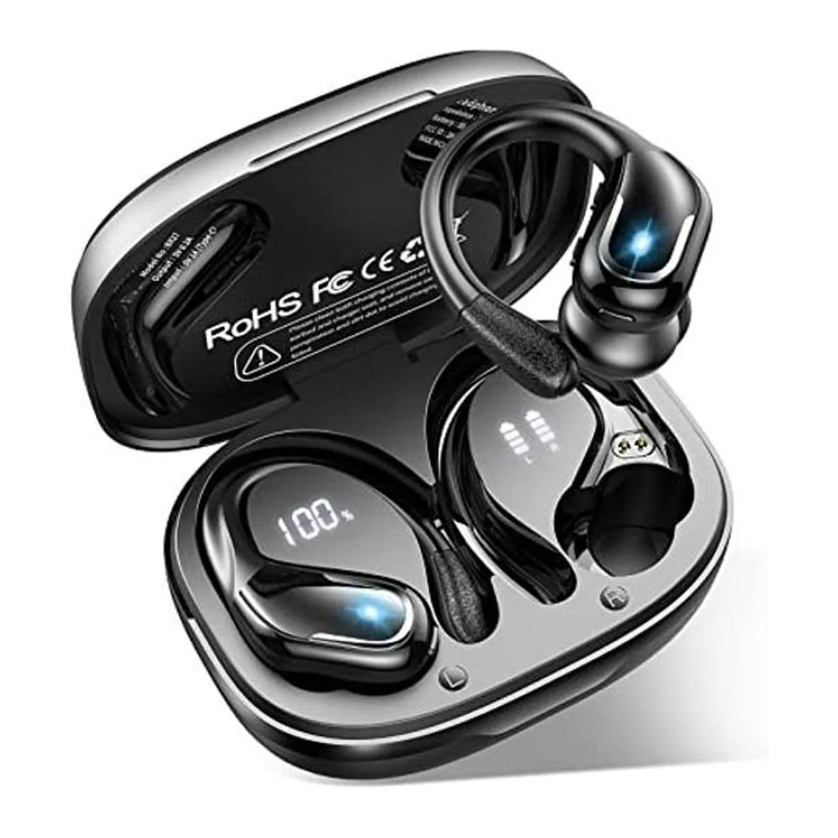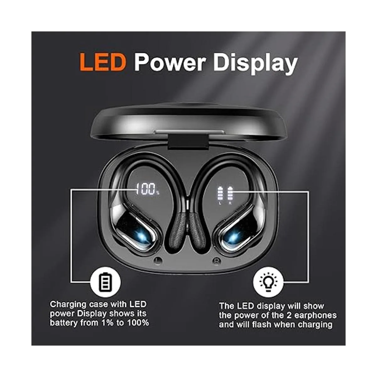 Ltinist Auriculares inalámbricos, Bluetooth 5.3, sonido de graves puro con ganchos para los oídos, batería de 60 horas sobre la oreja con pantalla LED doble, auriculares impermeables IP7 micrófono integrado para correr deportes