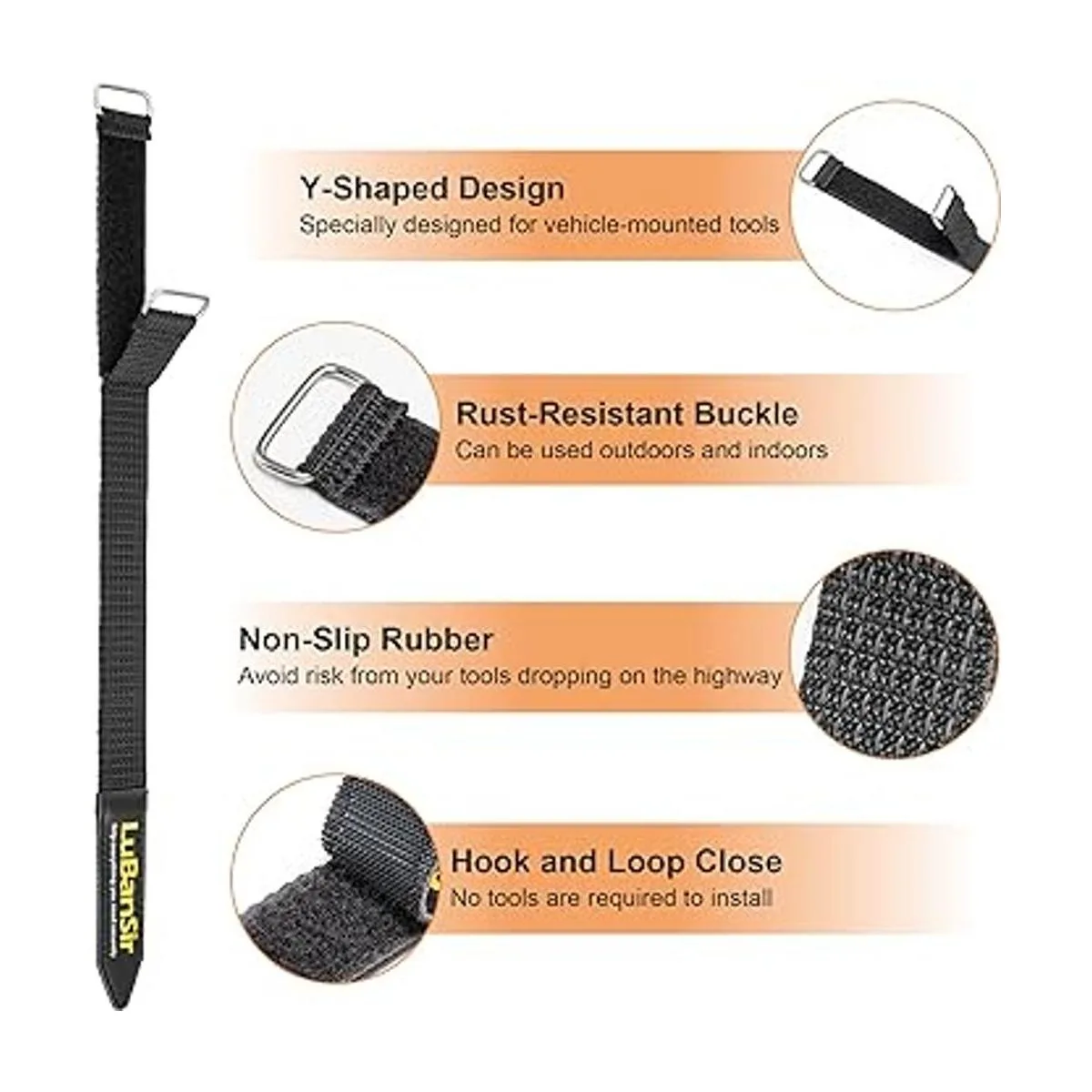 LuBanSir Paquete de 4 soportes para pala para portaequipajes, correas de gancho y bucle ajustables de 12 pulgadas para herramientas de montaje y equipos de 0.86 a 2 pulgadas de diámetro