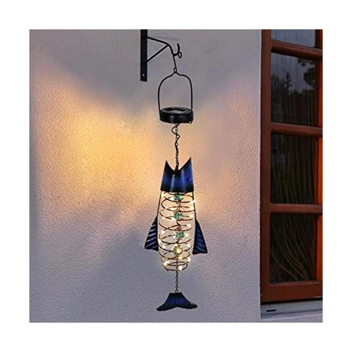 Luces al aire libre para decoración de jardín de patio, decoración solar de metal para colgar peces, lámpara solar decorativa para patio, bonita linterna para hombre y mujer, ideas de regalo de vacaciones, iluminación LED cálida impermeable