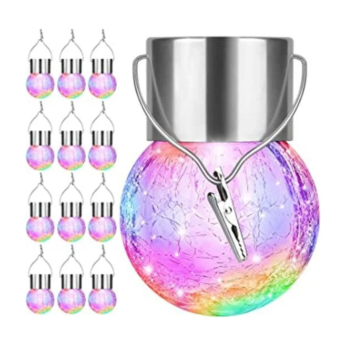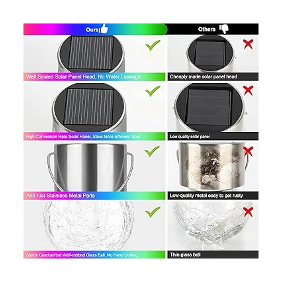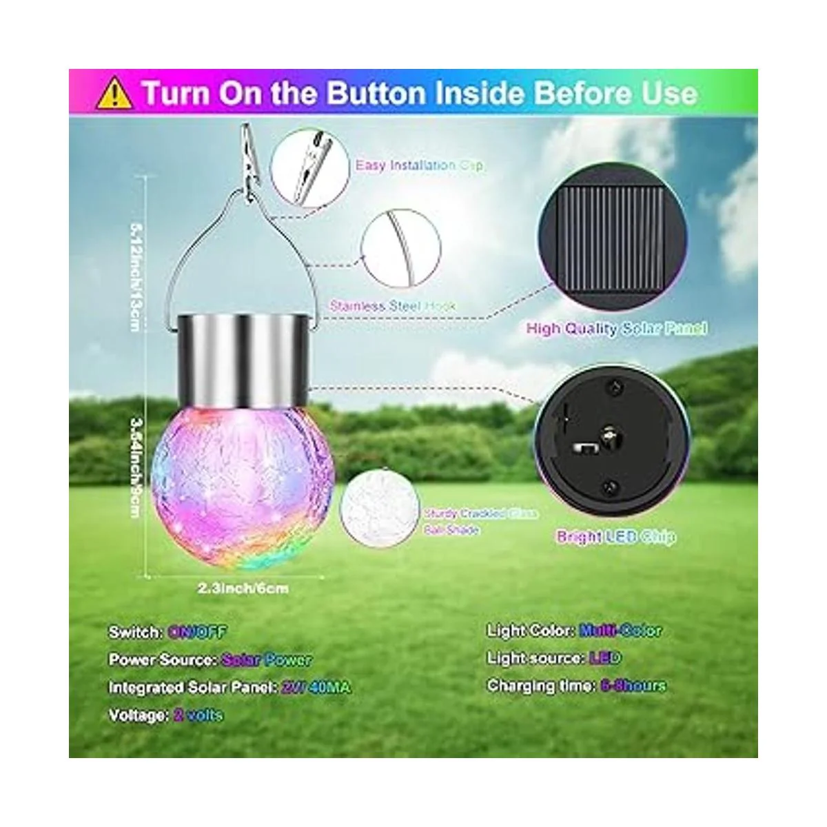 Hermosa iluminación de decoración y el mejor regalo: con una atractiva cubierta de bola de cristal agrietado, las luces solares colgantes para exteriores emiten un brillo increíble y proporcionan una iluminación cómoda a tu casa, hacen que tu lugar se vea romántico y maravilloso. Iluminación de decoración perfecta para jardín, patio, valla, balcón, camino, rama de árbol, paraguas, decoración al aire libre o vida cotidiana. También es un regalo ideal para tu familia y amigos en aniversario, cumpleaños de inauguración del hogar u otros eventos y festivales.