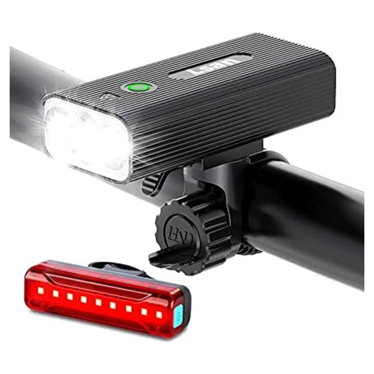 Superbrillante y largo tiempo de funcionamiento: la luz frontal de bicicleta tiene 3 LED con una salida máxima de 1200 lúmenes, iluminando la carretera que conduces por la noche. El tiempo de funcionamiento del faro es de 5 a 15 horas, y el tiempo de funcionamiento de la luz trasera es de 50 a 80 horas, lo que puede satisfacer tus necesidades de iluminación de conducción prolongada.