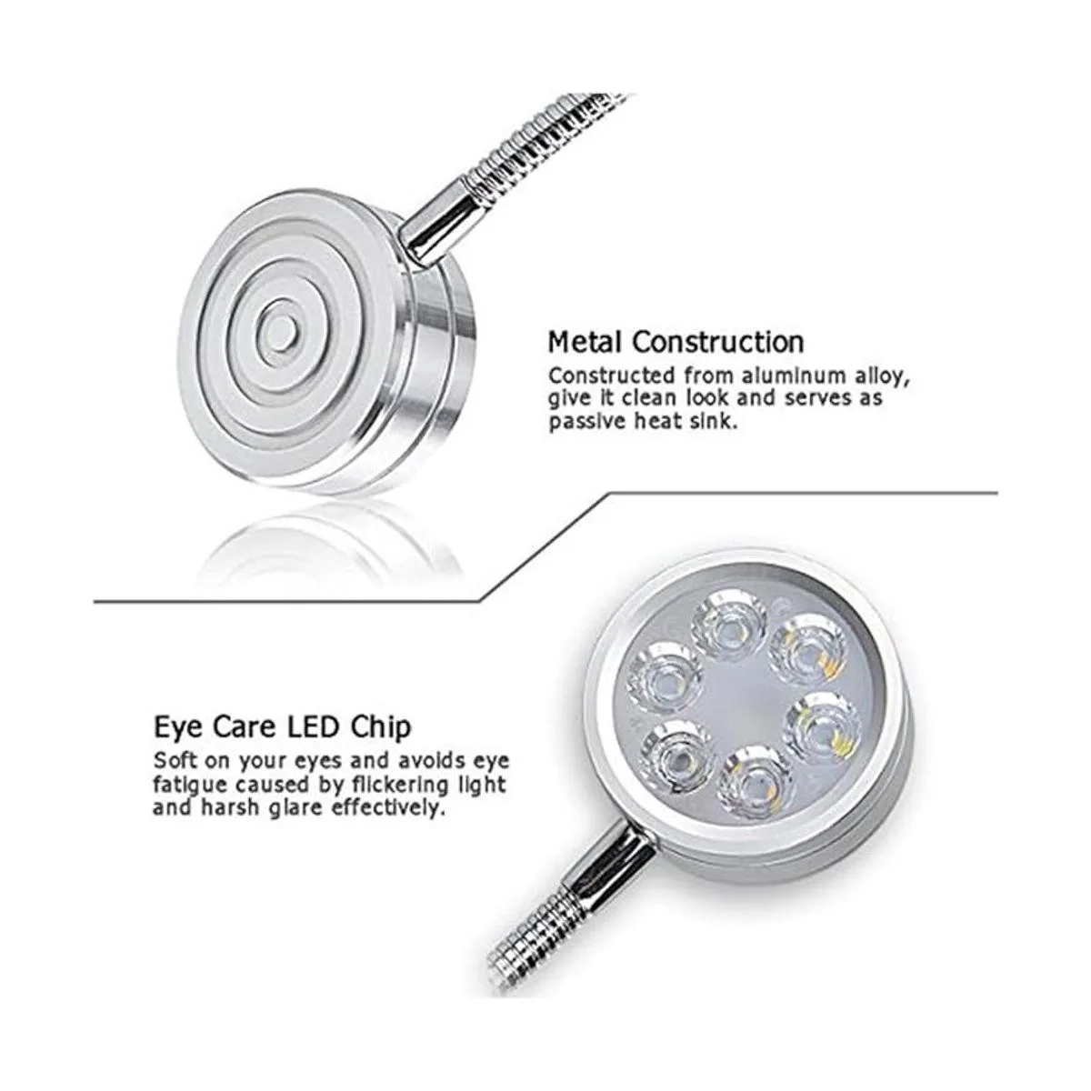 Luz flexible para libro: cuello ajustable de 720 con longitud de 11.8 in. El brazo de cuello de cisne se puede ajustar fácilmente y sostener en cualquier dirección.