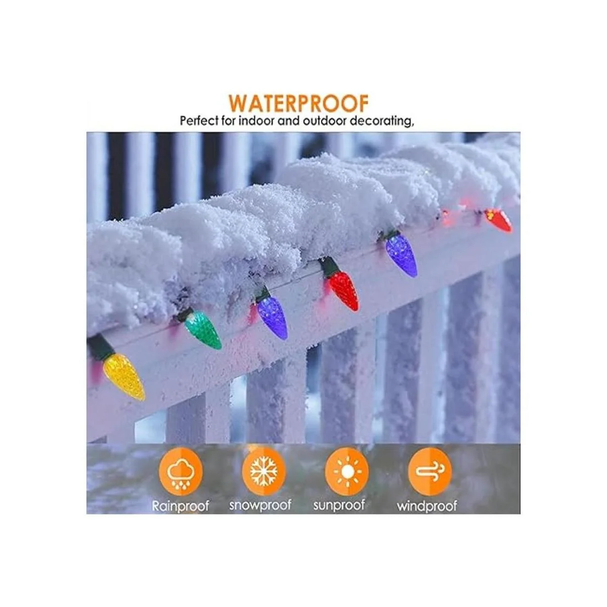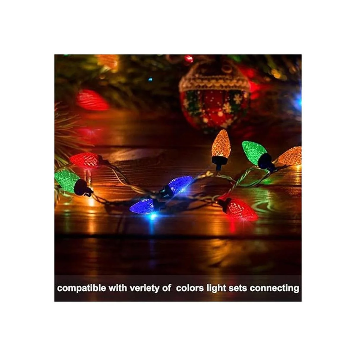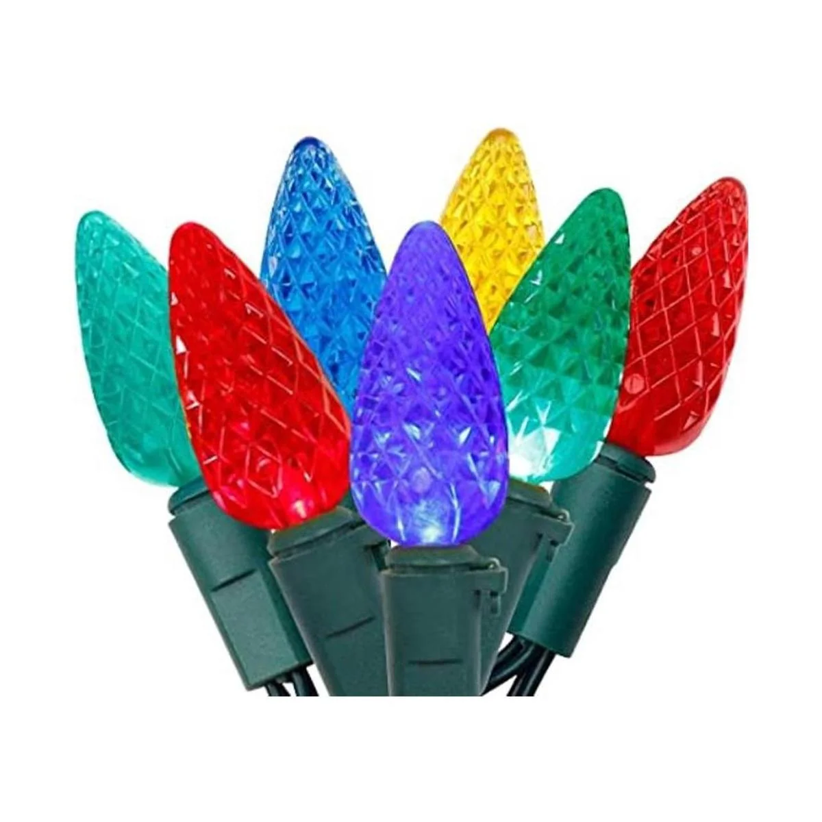 Dimensiones del producto: estas luces de Navidad para interiores y exteriores tienen una longitud total de 16.5 pies, diseña celebraciones de Navidad con 50 bombillas LED de fresa, el tamaño de la bombilla C6 es de 1.96 x 0.6 pulgadas, el espacio entre la bombilla es de 0.33 pies. Las bombillas facetadas del juego de cuerdas de Navidad brillan con amarillos, azules, verdes y rojos para crear una brillante exhibición navideña.