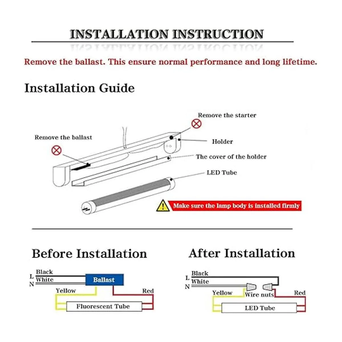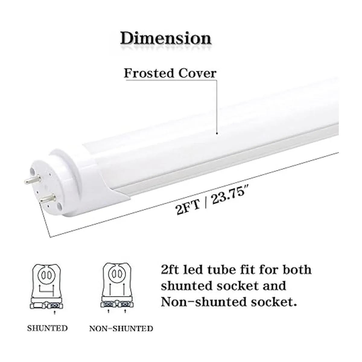 Fácil instalación: el balasto existente debe ser retirado o derivado. Forma estándar internacional para tubo de luz LED T8 de 2 pies. Fácil de instalar en lugar de lámparas de tubo fluorescente tradicionales.