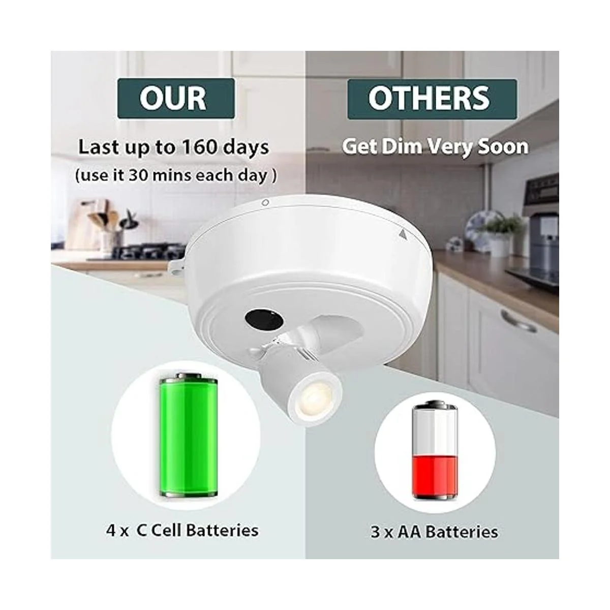 Funciona con pilas: las luces de la batería funcionan con 4 pilas C batería incluida, no requiere toma de corriente ni enchufes No requiere cableado Cada juego de pilas alcalinas dura hasta 160 días utilizando 4 pilas alcalinas C, úsalo 30 minutos cada día a máximo brillo. El tiempo de funcionamiento de la batería es 10 veces más que otras luces LED similares que funcionan con pilas.