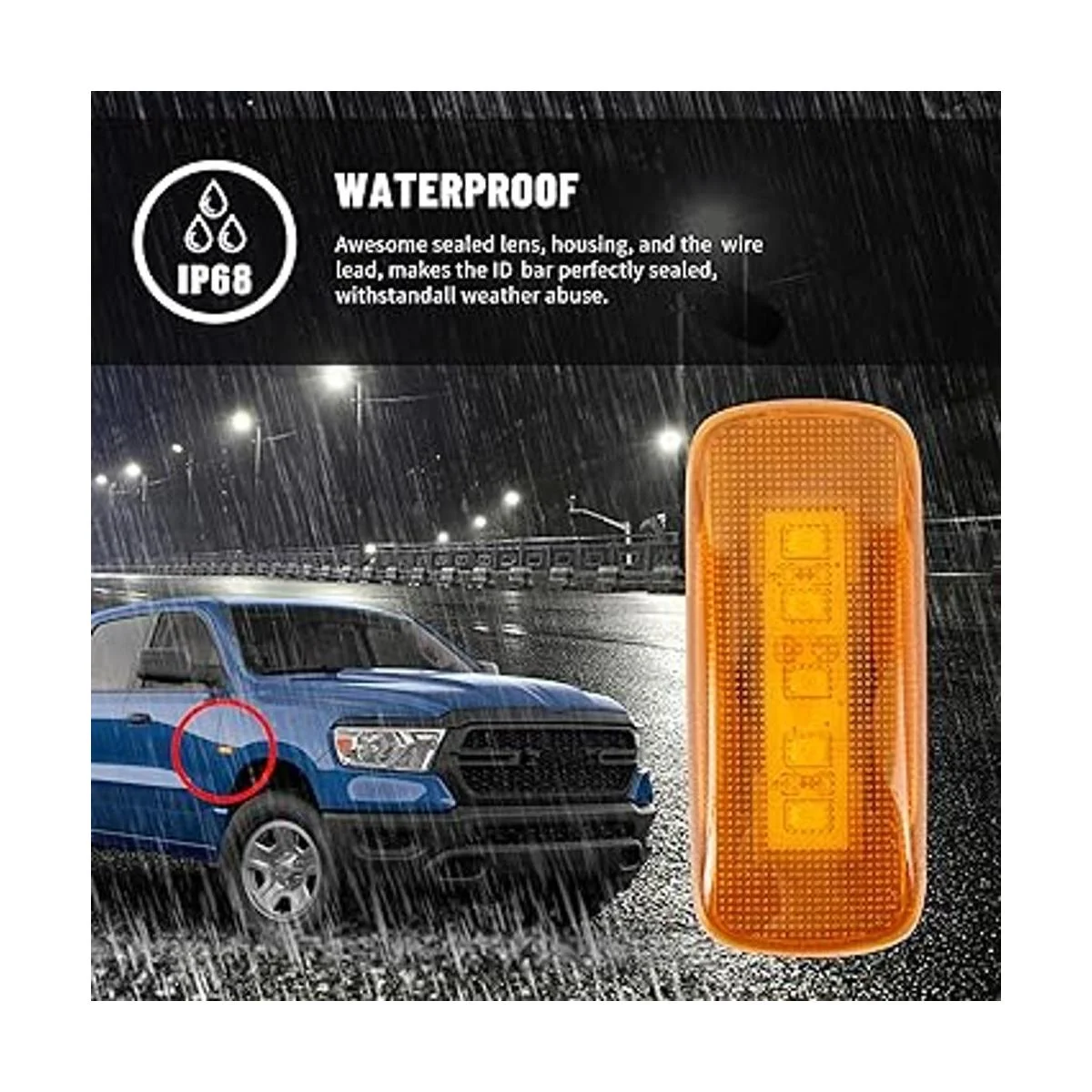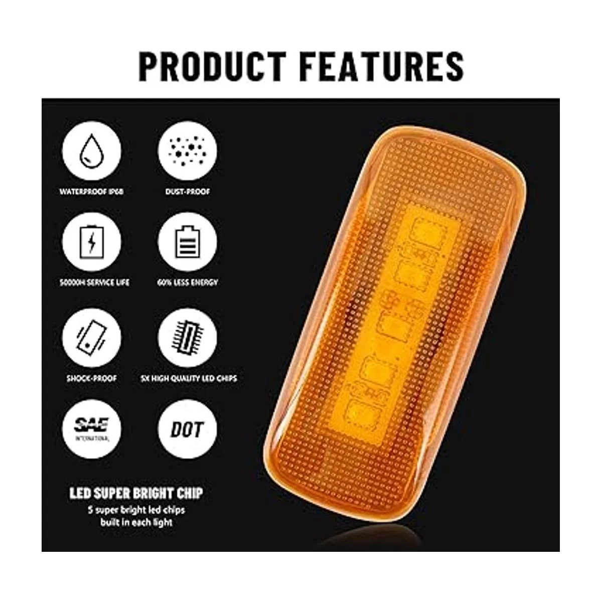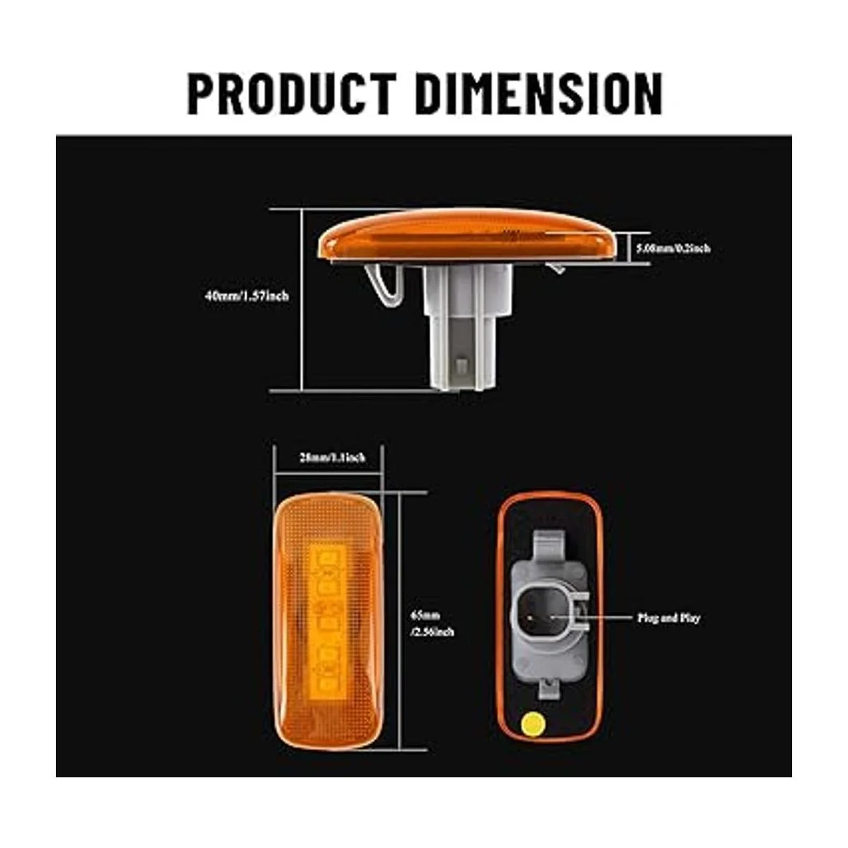 Enchufe T10 169 192 para una fácil instalación; cada kit cuenta con lentes de plástico ABS súper fuertes que han sido tratadas con rayos UV para que no se desvanezcan por la exposición prolongada a la luz solar, dimensión de las luces de guardabarros laterales: aproximadamente 3.386 x 1.516 x 0.768 in 3.4 x 1.5 x 0.8 pulgadas. Nota: si el LED no se ilumina, simplemente dale la vuelta 18 0 grados invierte la polaridad o si los marcadores de guardabarros no se ajustan a tus enchufes de fábrica, corta los conectores para cableado; dimensión de las luces de marcador de parrilla: lámpara de 0.693 in
