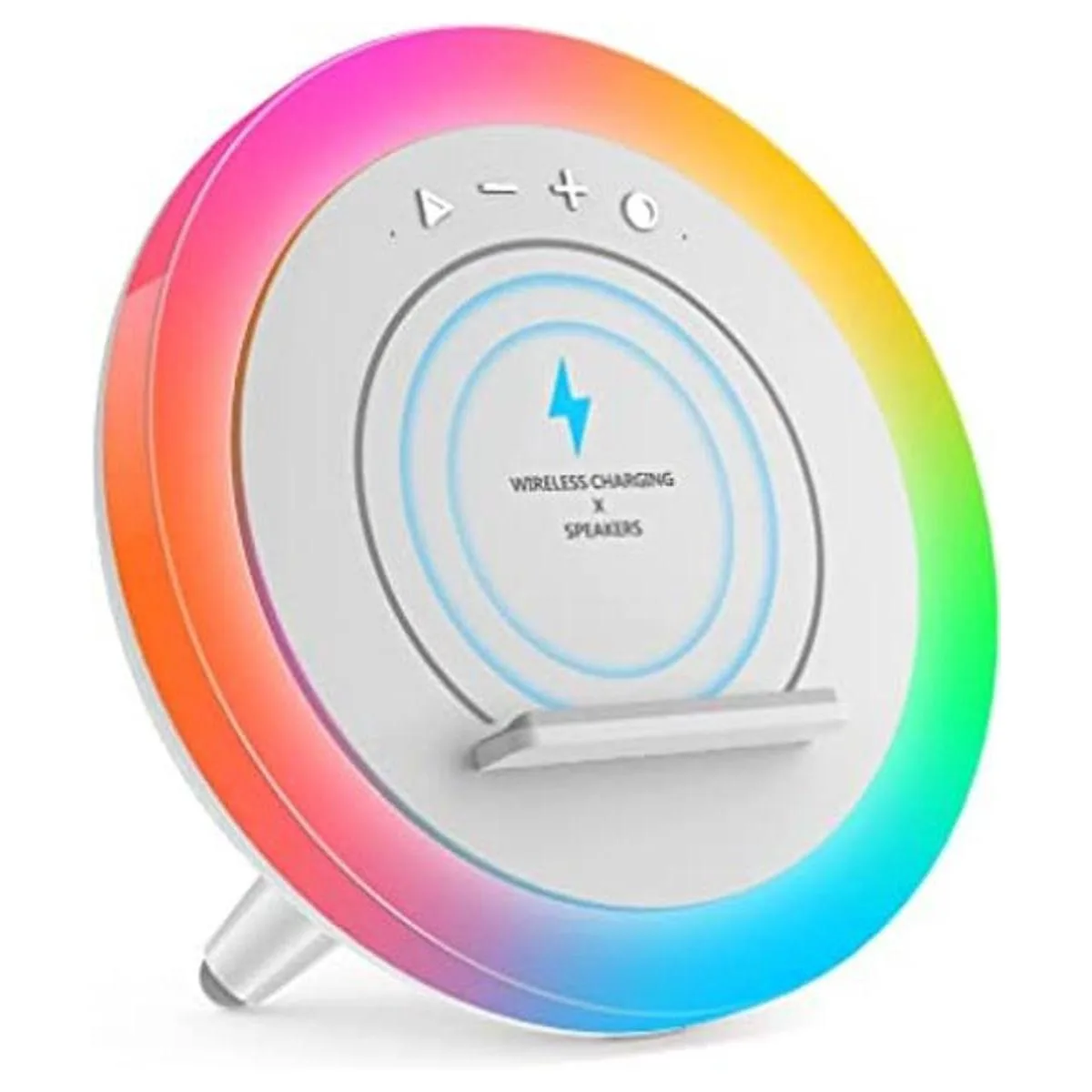 Luces nocturnas con altavoz Bluetooth, altavoz inalámbrico para niños, lámpara Bluetooth moderna que cambia de color, ideas de regalos para adolescentes y niñas carga inalámbrica de 10 W