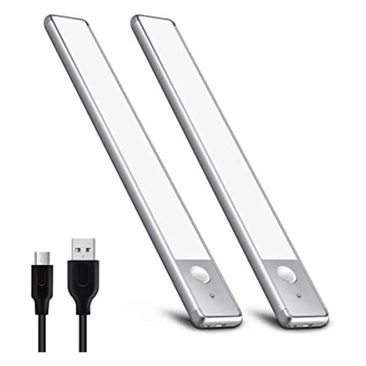 Luces para debajo del armario con batería de 900 mAh, 52 luces LED para armario, luz con sensor de movimiento para interiores, 3500 K, luces nocturnas inalámbricas regulables para dormitorio, armario, armario, pasillo, escaleras, aluminio paquete de 2