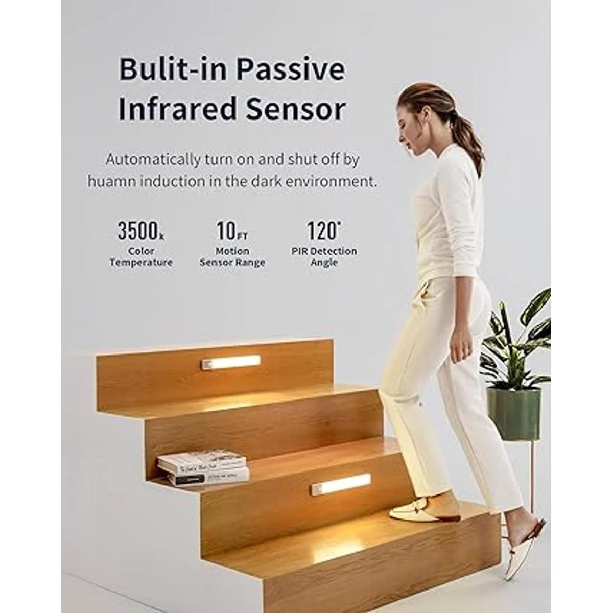 Luz nocturna con sensor de movimiento: sensor de movimiento PIR integrado y sensor de luz ambiental, las luces debajo del armario detectan el movimiento humano dentro de 9.8 pies y se encienden automáticamente en el ambiente oscuro