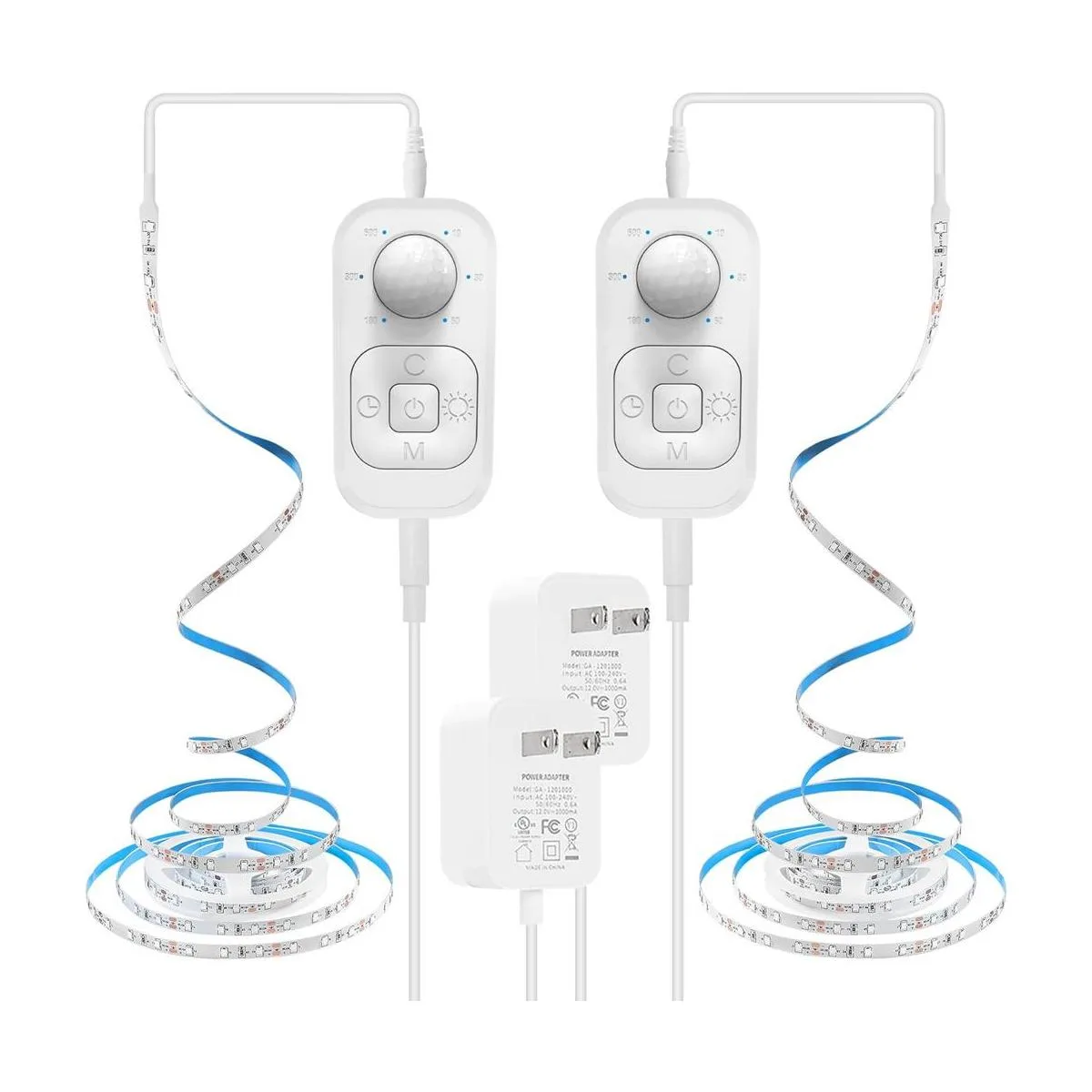 Múltiples aplicaciones: Enchufe 9.84 pies 6000 K sensor de movimiento blanco frío debajo del gabinete luz interior con adaptador de corriente, regulador, temporizador y conectores extensibles para armario de cocina, mostrador, estante, escaparate, dormitorio, pasillo, baño, escalera.