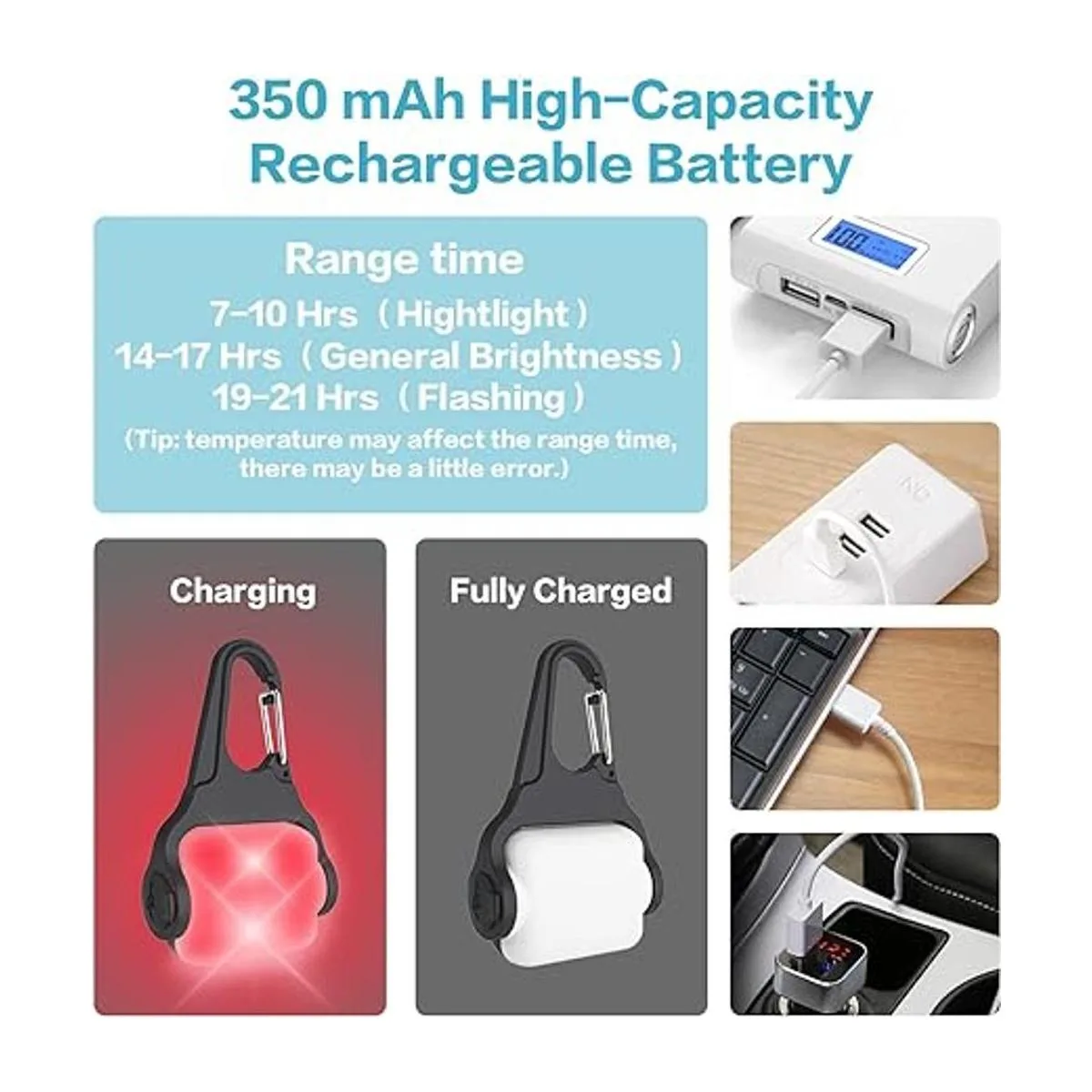 Batería recargable de gran capacidad de 350 mAh: cuando la linterna para perro está completamente cargada, esta luz para caminar para perros tiene una duración de batería de hasta 21 horas. El alto brillo dura de 7 a 10 horas, el brillo medio dura de 14 a 17 horas, y el modo flash dura de 19 a 21 horas.