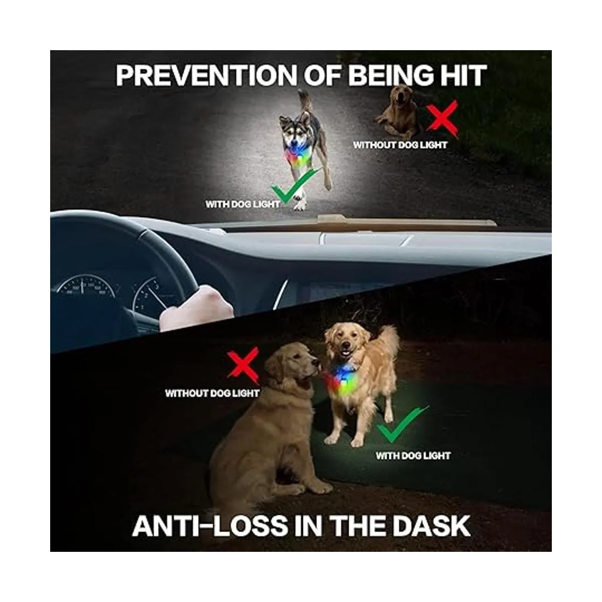 Luces para perros para caminar nocturno luz de collar de perro que cambia de color, 4 modos de luz recargable para perro, luz impermeable IP65, linterna de perro para correr, camping, escalada, bicicleta, paquete de 2