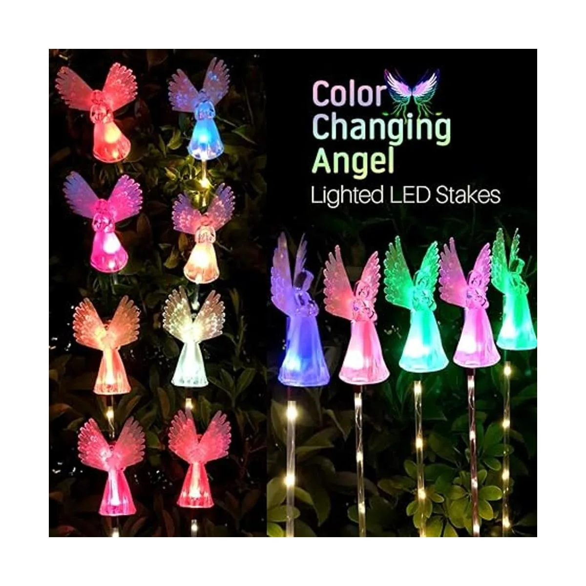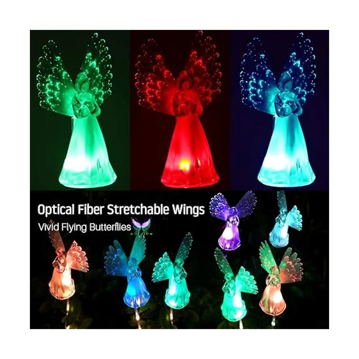 Luz decorativa alimentada por energía solar para jardín Las cuentas LED que cambian de color iluminan un paisaje de jardín vívido de ángel colorido en las flores.