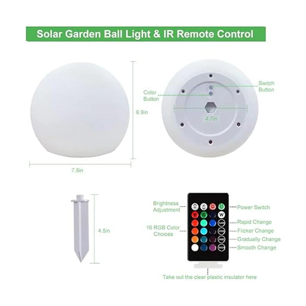 Luces solares de bola con estaca para el suelo, luces solares de 8 pulgadas para exteriores, impermeables, sensor de luz de globo orbal, 16 colores, 4 modos de luces nocturnas para jardín, patio, exterior, lámpara de tierra