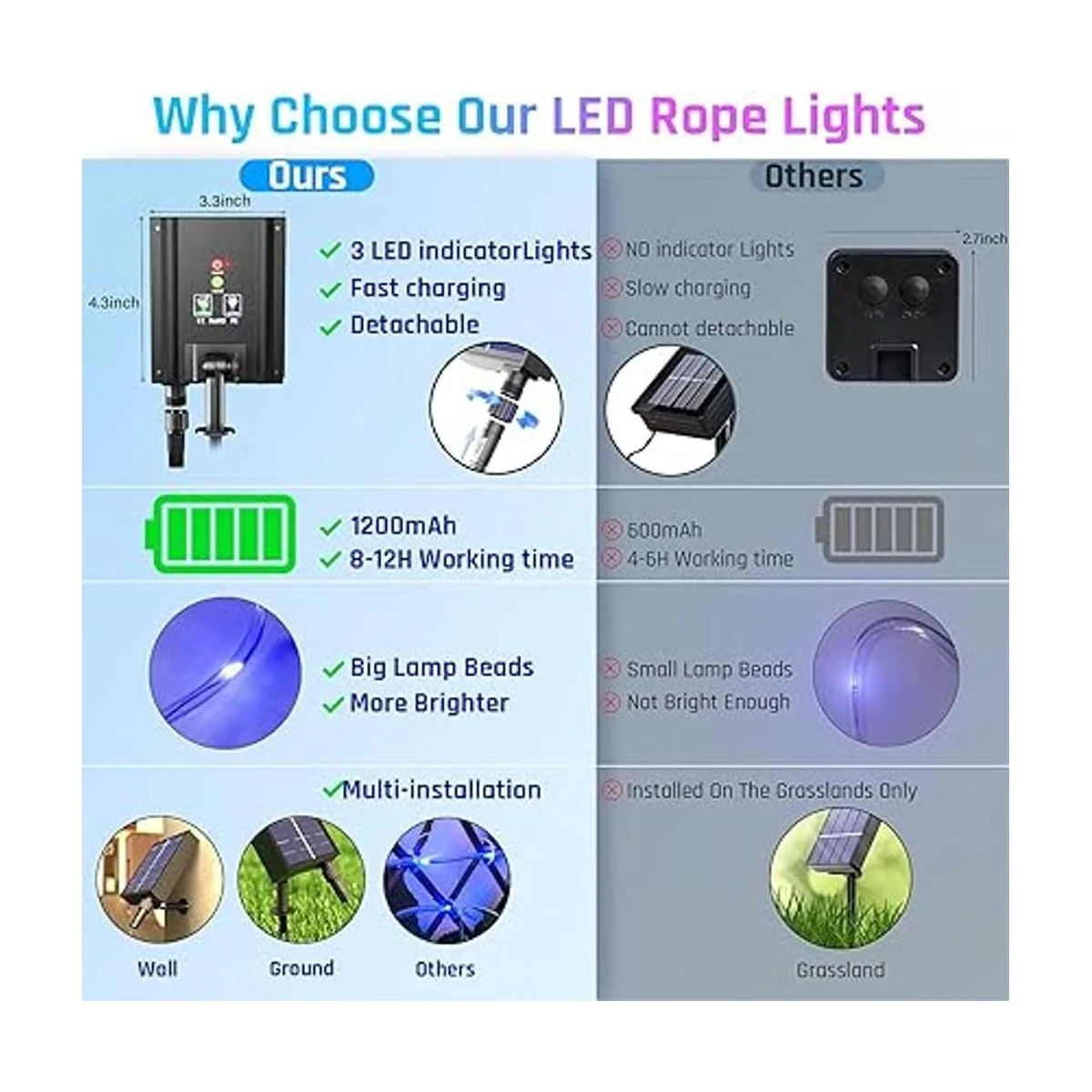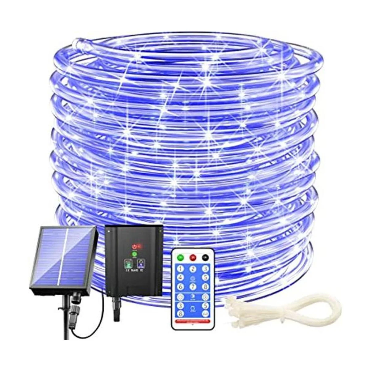 Luces solares de cuerda para exteriores, impermeables, LED, 200 luces LED de cuerda solar, 72 pies, 8 modos con control remoto, flexible, tubo solar para jardín, patio, valla, balcón, piscina, trampolín, fiesta