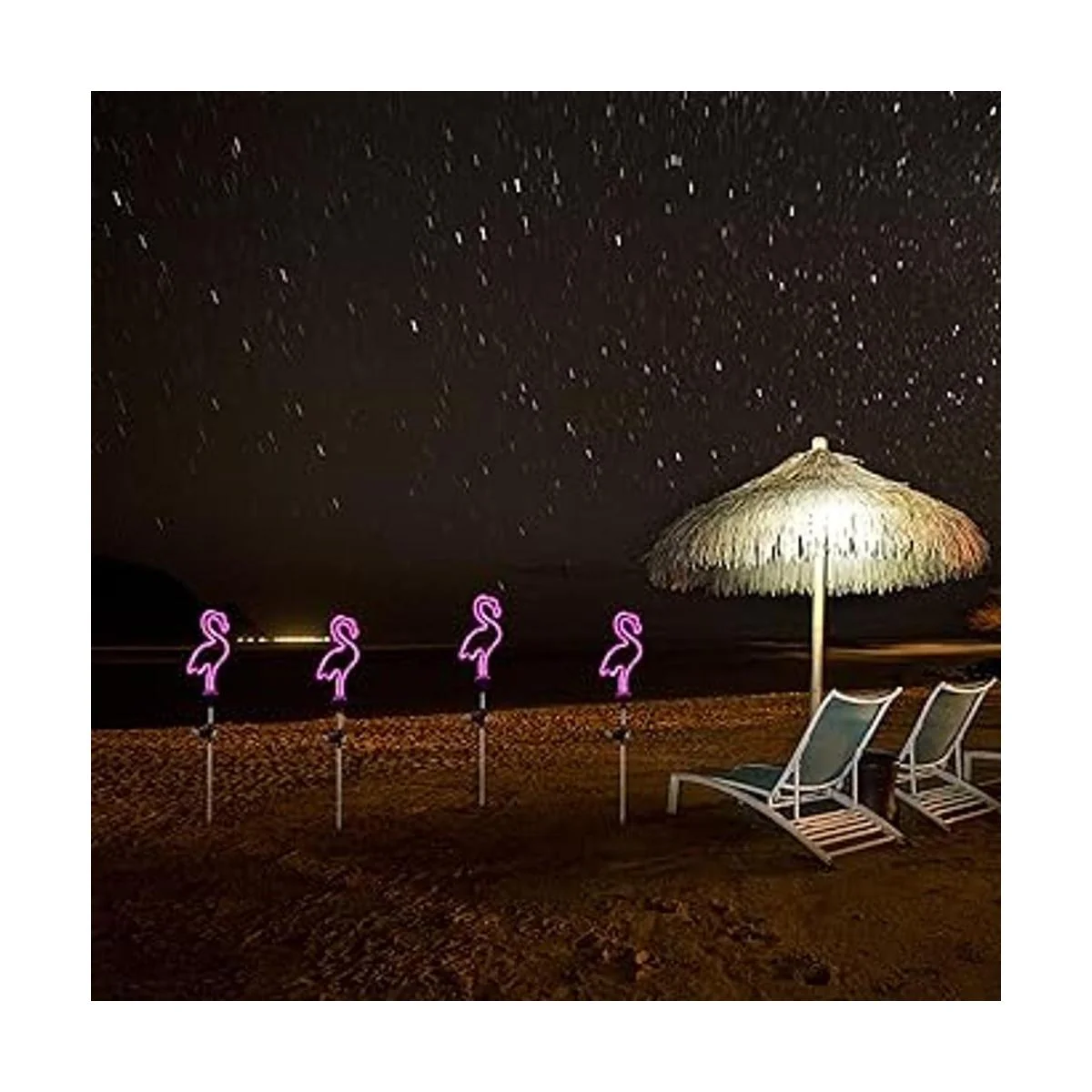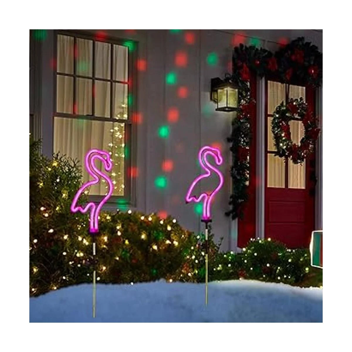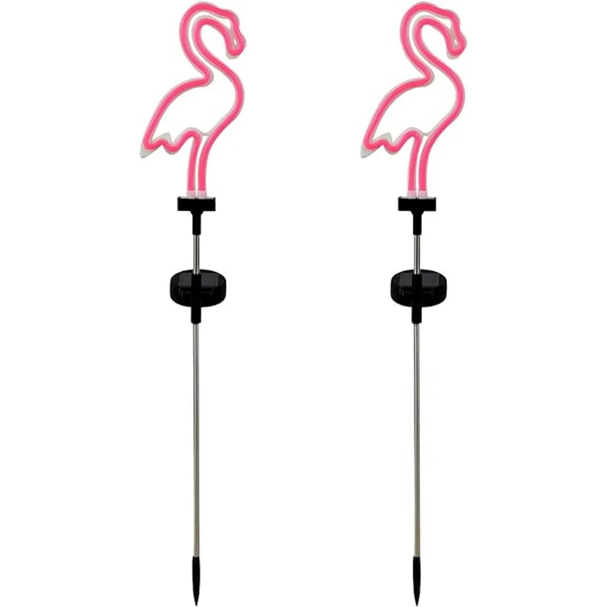 Luces solares de estaca de jardín de flamenco, juego de 2 luces solares para exteriores para césped, patio, pasarelas, iluminación rosa neón 30 pulgadas de altura