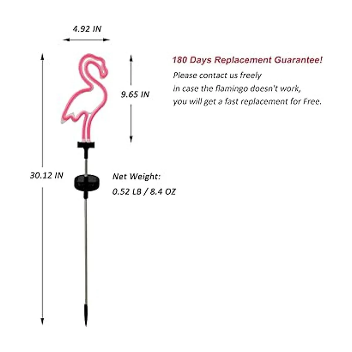 Cómo funciona: cuando recibas las estacas solares de flamenco, necesitas encender el interruptor en la posición ON y colocar el panel solar bajo la luz solar directa para cargar durante 6 8 horas durante el día, entonces el tiempo de iluminación será de al menos 8 horas por la noche.