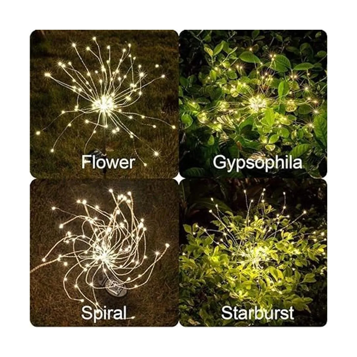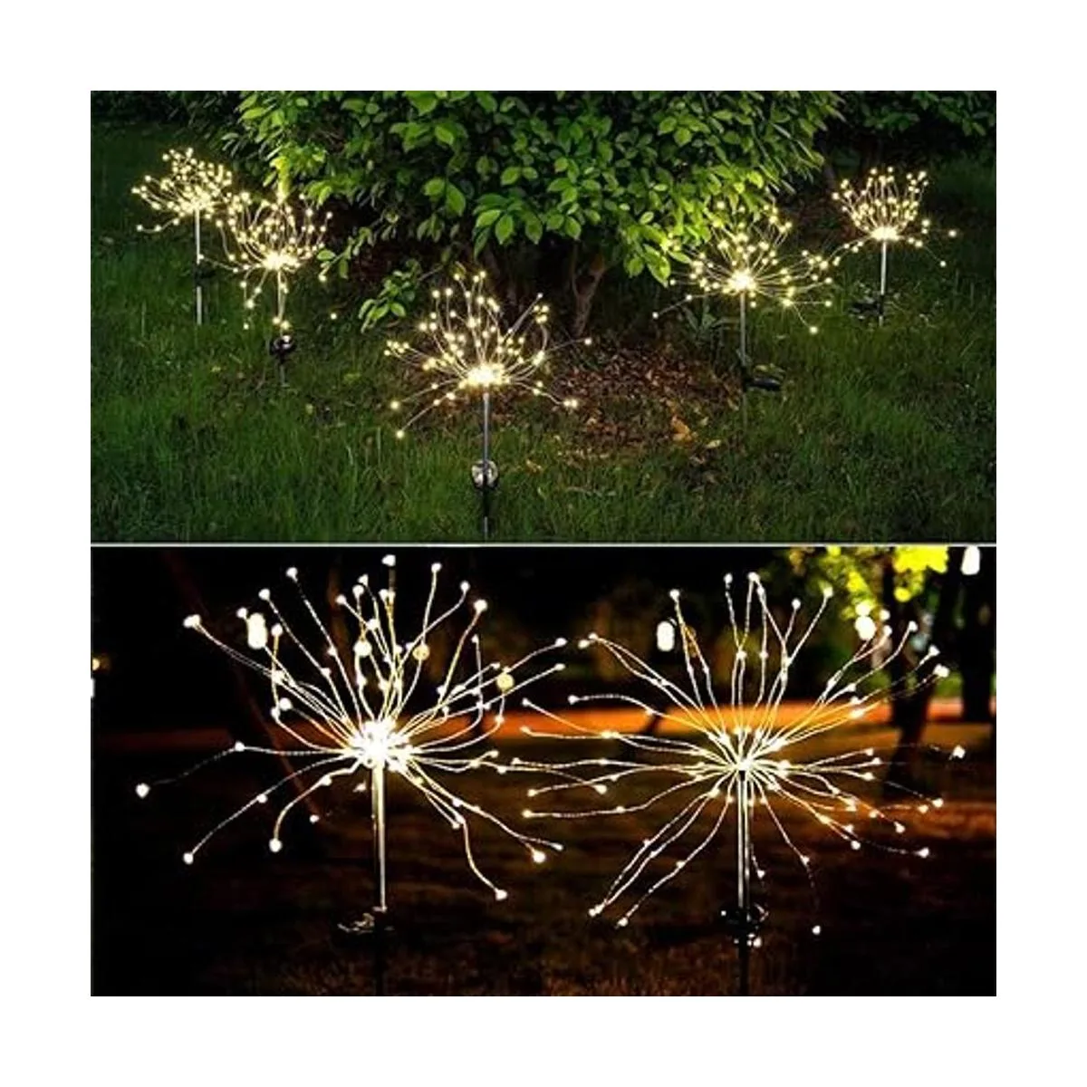 Luces solares creativas para jardín: regalo perfecto para amigos y familiares. Haz cualquier forma que te guste, como flores, árboles, fuegos artificiales, norias, corazones, espirales, esferas. Modo de encendido constante e intermitente. Adecuado para decorar el jardín, patio trasero, acera, parterres, vallas, techo, etc.