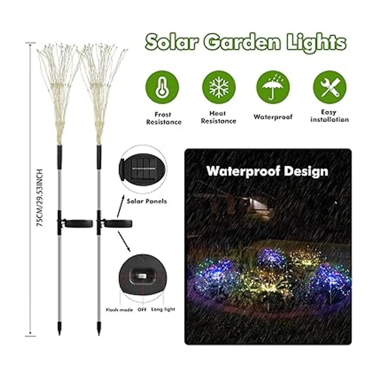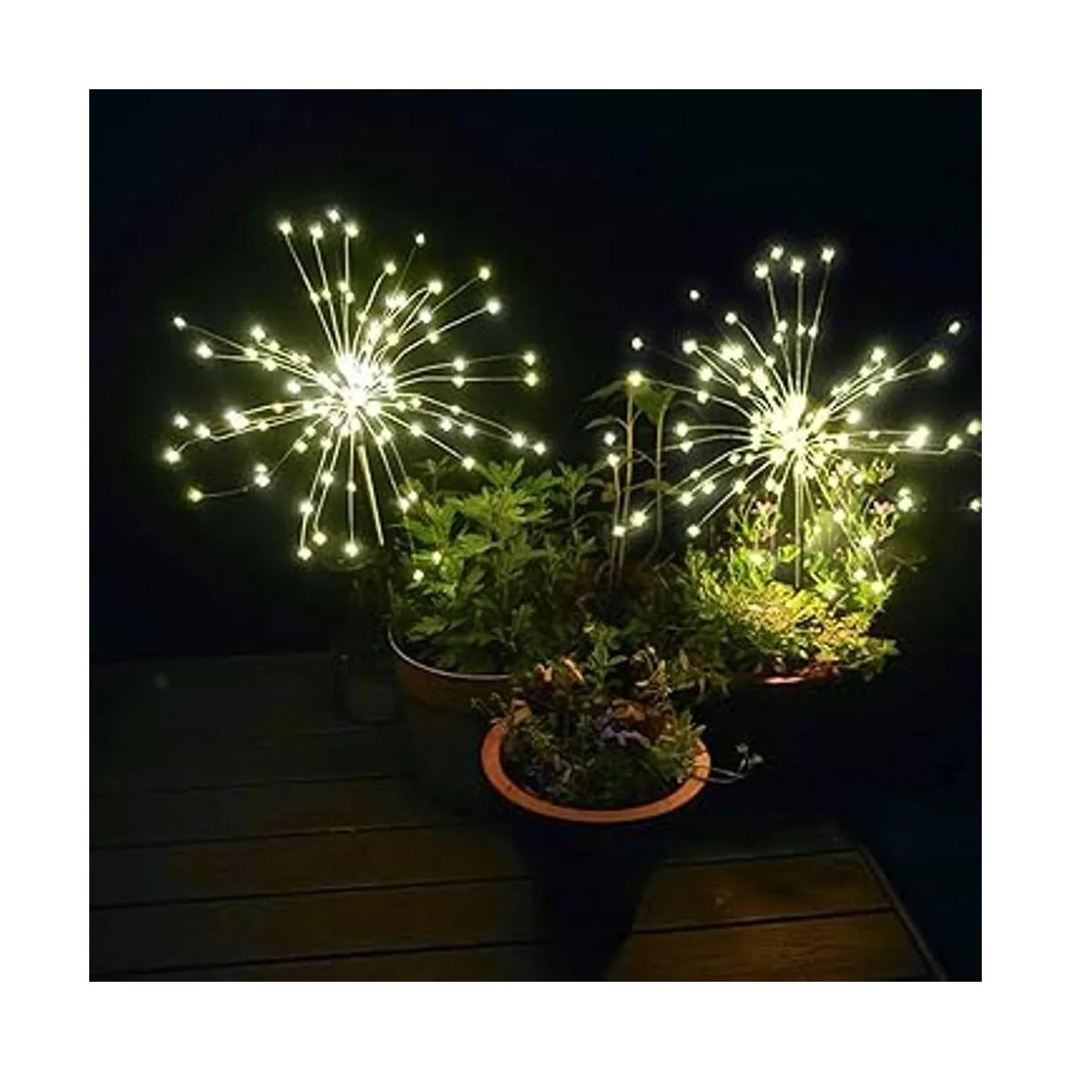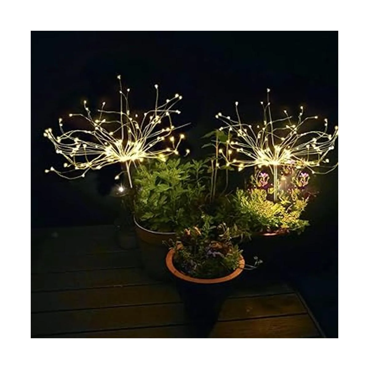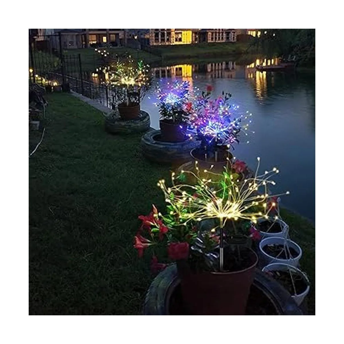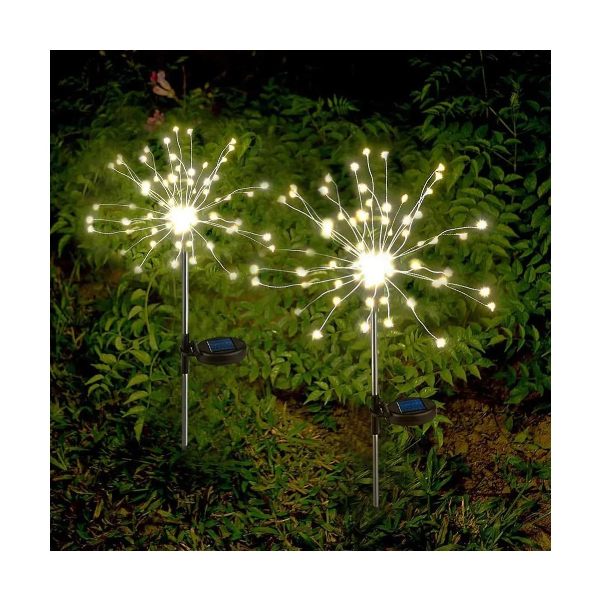 Luces solares de jardín, luces solares con forma de fuegos artificiales con 2 modos de iluminación y encendido continuo, para jardín, patio, cama de flores, fiestas