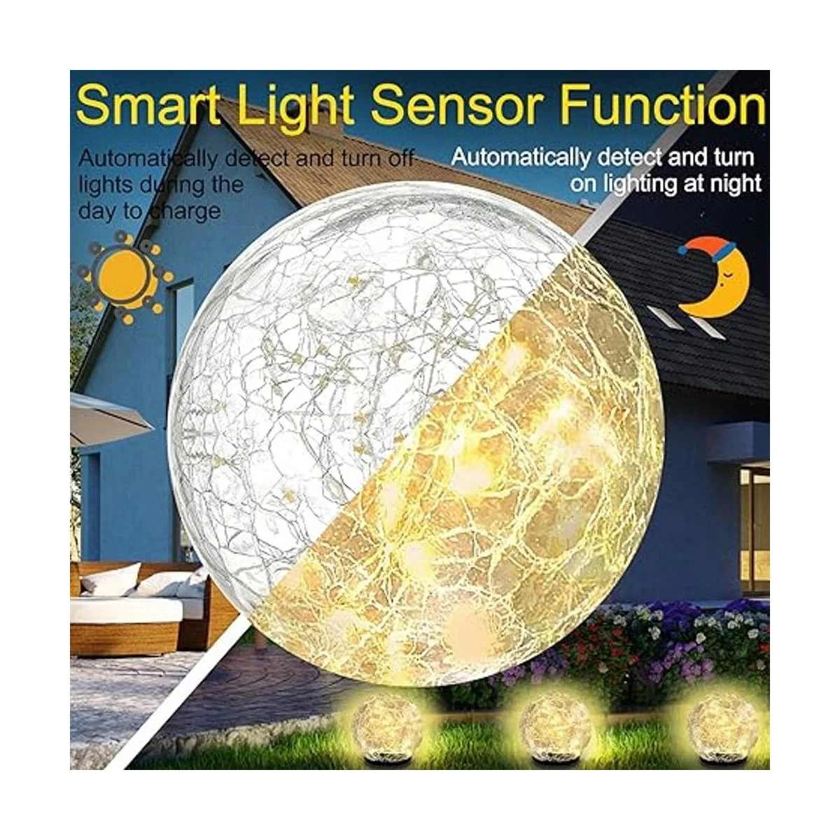 Luces solares de jardín decorativas para exteriores: en comparación con las luces de bola tradicionales, estas hermosas luces solares decorativas para exteriores están diseñadas con bola agrietada, cuando se encienden por la noche se verá como un gran brillo de diamante. Estas luces solares de globo decorarán tu habitación y jardín con un sentimiento romántico. Es una gran decoración navideña y idea de regalo para niños.