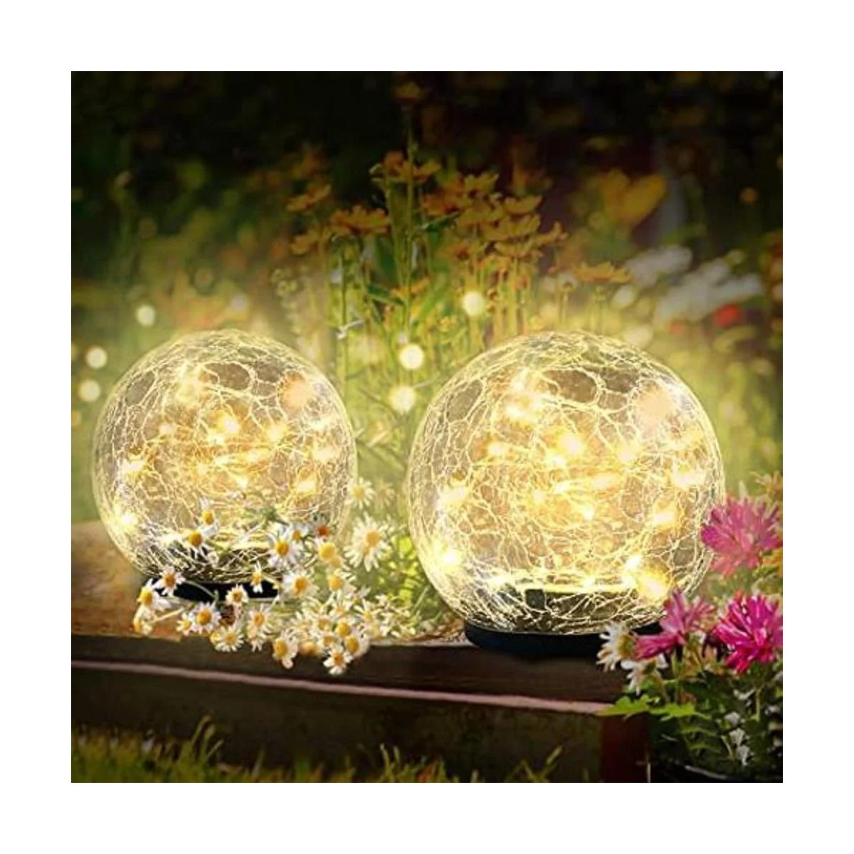Luces solares de jardín para exteriores, 2 paquetes de luces solares de bola de vidrio agrietado, impermeables, 40 luces LED solares de patio para pasarelas, jardín, patio, césped, decoración al aire libre blanco cálido
