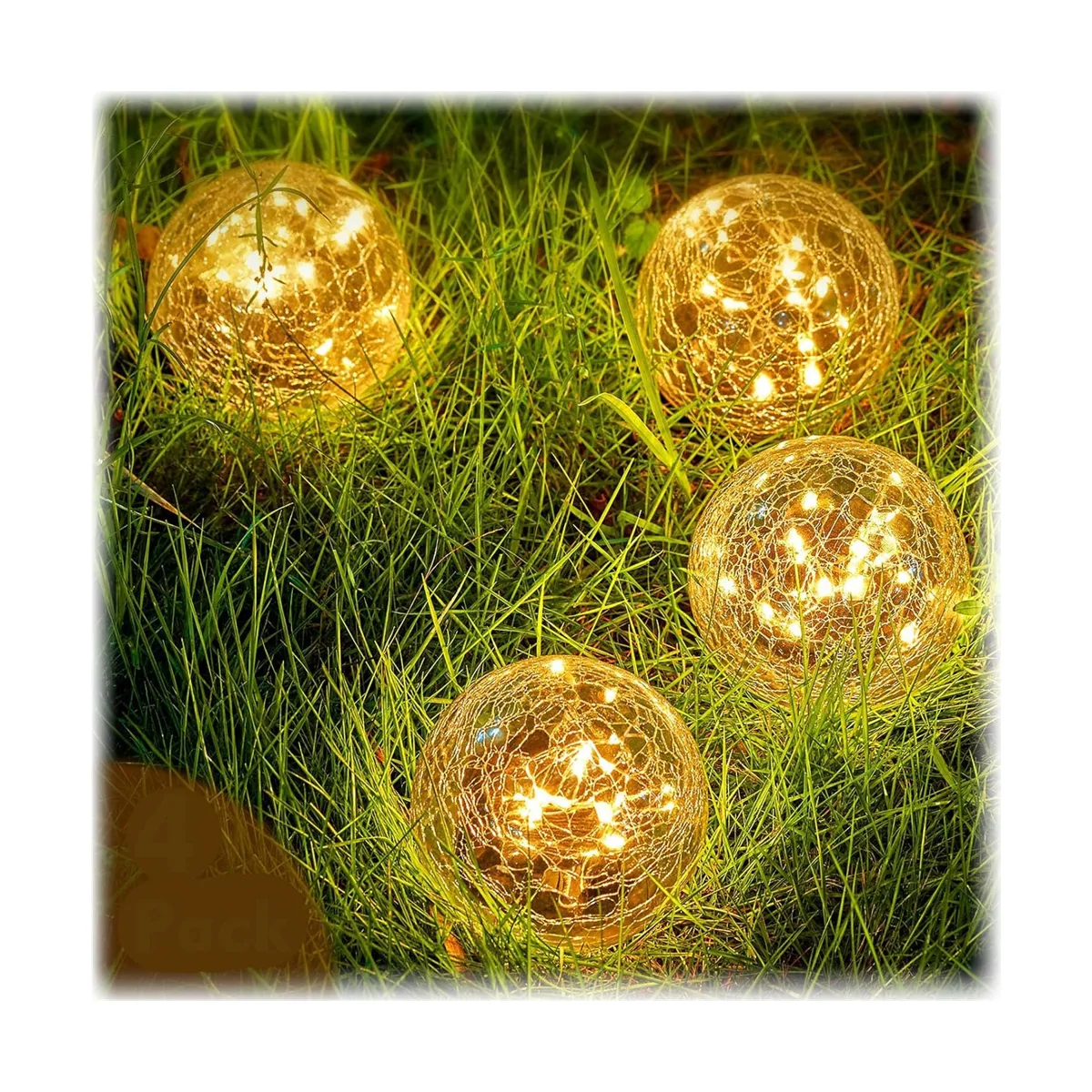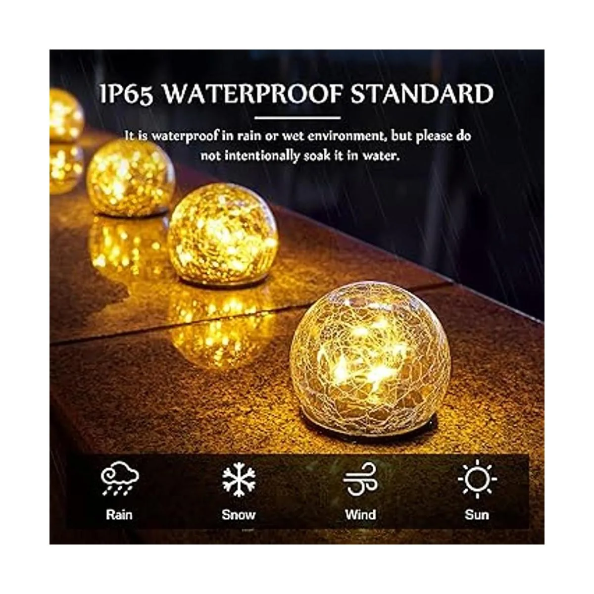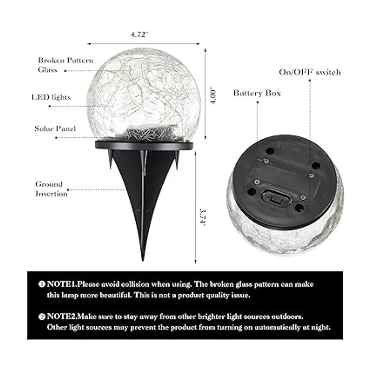 Luces solares de jardín para exteriores, luz de globo de vidrio agrietado, decoración de patio, impermeable, luz solar LED blanca cálida, decoración de jardín para patio trasero 4, 4.7 pulgadas