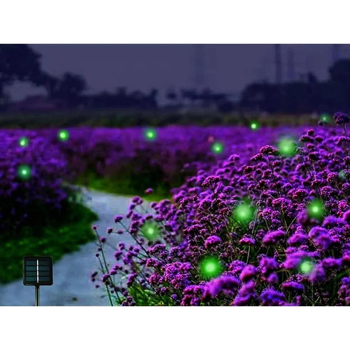 Tecnología de sensor solar y de luz con 9 luces pulsantes de luciérnaga para exteriores, impermeables, amarillentas y de bajo consumo para tu jardín, valla, árboles o zona de piscina.