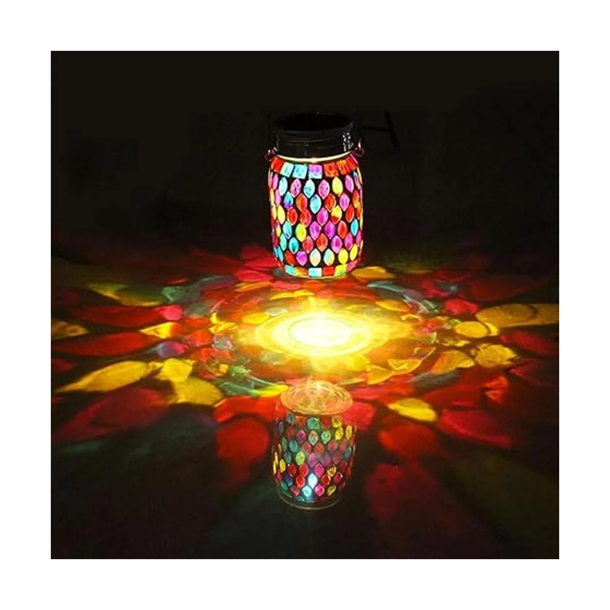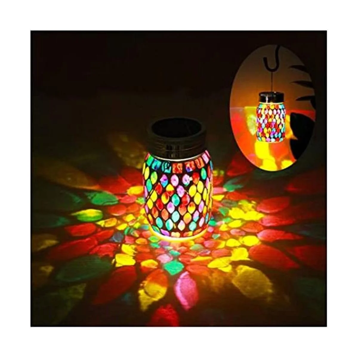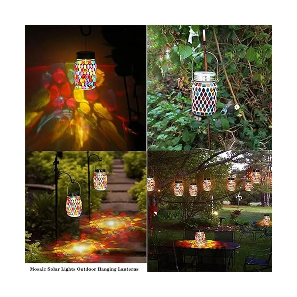 Luces solares de mosaico para colgar al aire libre, linternas solares de mosaico recargable, luces solares impermeables para exteriores, lámparas de mesa para decoraciones