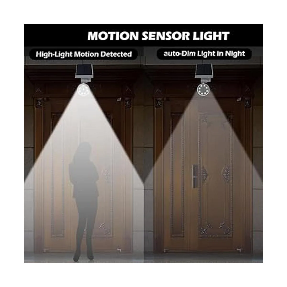 Sensor de movimiento de sensor infrarrojo pasivo de alta sensibilidad y ajustable: Diseñado con sensor de detección de movimiento de sensor infrarrojo pasivo integrado más grande y actualizado, estas luces solares pueden detectar hasta 2026 pies / 6 8 metros de distancia y rango de 120 grados, encendido automático de luz brillante 1400 lm cubre hasta 2200 pies cuadrados / 204.38 metros cuadrados cuando se detectan personas u otros objetos vivos dentro de la zona de detección. Se puede activar fácilmente con pequeños movimientos, como los escalones de tus pequeñas mascotas.