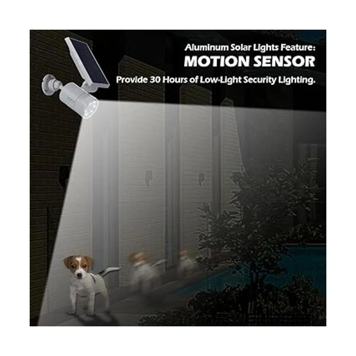 Luces solares de movimiento para exteriores de 9 vatios equivalente a 110 vatios Focos solares de aluminio de 1400 lúmenes, seguridad de inundación para jardín, entrada, garajes, puertas, cubiertas y porches, blanco