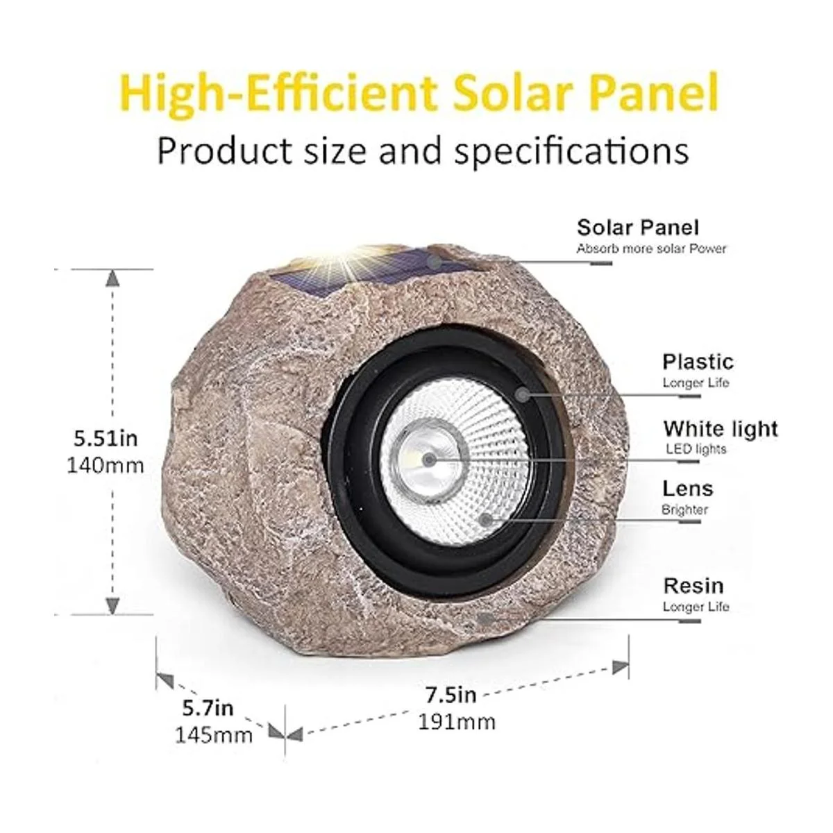 IP65 resistente al agua y nunca temas a los extremos Nuestras luces solares de imitación de roca utilizan un proceso de plástico único respetuoso con el medio ambiente, que tiene una mejor impermeabilidad, robustez y estabilidad y puede prevenir eficazmente la corrosión y el óxido. Soporta todo tipo de clima para uso al aire libre en varias estaciones. No te preocupes por la lluvia, la nieve, las heladas o las altas temperaturas.