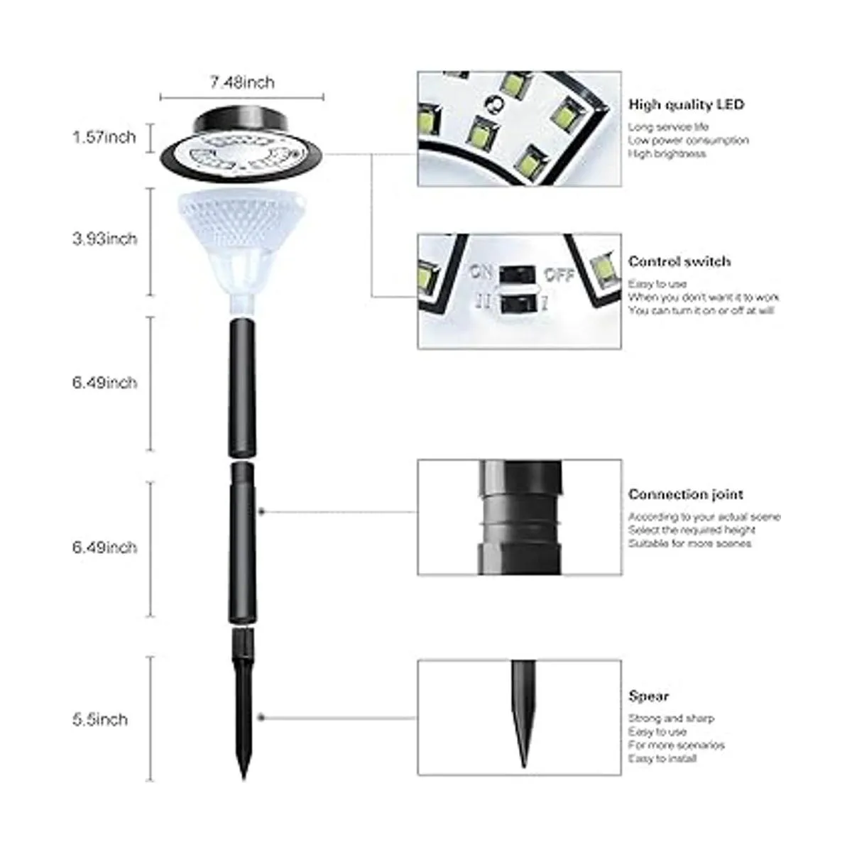 Se puede colocar en cualquier lugar: utiliza esta luz solar LED para jardín, camino, hogar, patio, parque, jardín, césped, patio, pasarela, entrada, patio trasero, valla, garaje, etc. Como luz solar, instálala al aire libre y tenga suficiente energía solar.