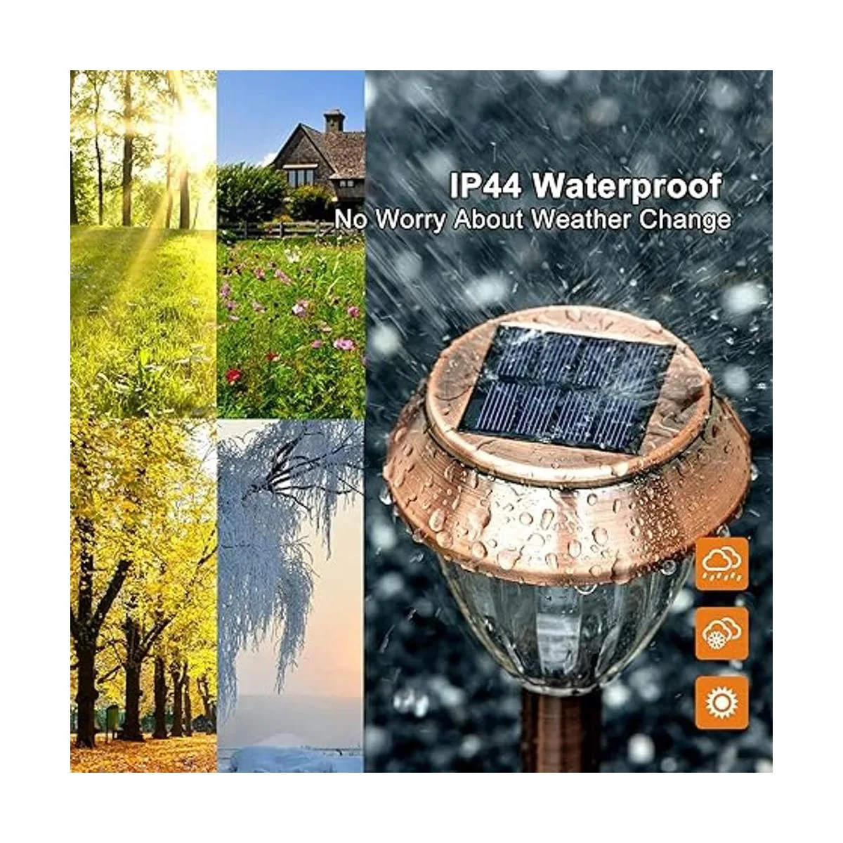 Exquisita artesanía: hecho de acero inoxidable cepillado chapado en cobre con pantalla de luz de vidrio de diamante hermética, mucho mejor que la iluminación solar de patio hecha de plástico. Te permite utilizar esta luz solar para jardín al aire libre de forma duradera. Aviso: hay una pestaña en la pantalla de la linterna, por favor, quítala antes de cargar
