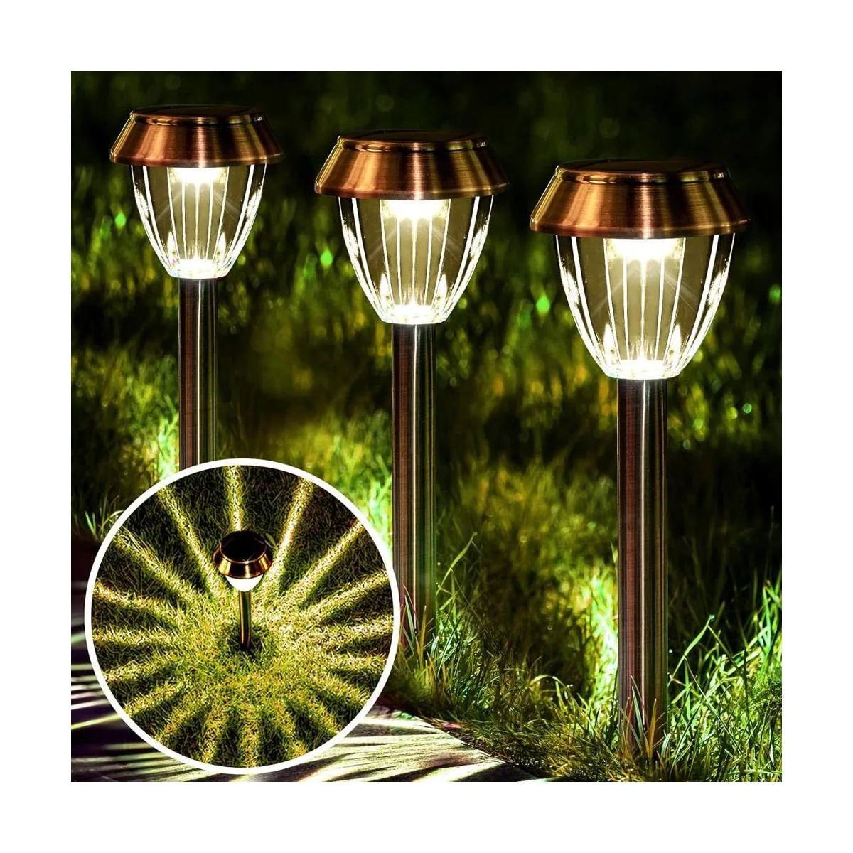 Luces solares para caminos al aire libre, impermeables, paquete de 6 luces de jardín alimentadas por energía solar, brillantes hasta 12 horas, luz LED de paisaje, iluminación decorativa de cobre de acero inoxidable, luz de entradapasarela, blanco cálido